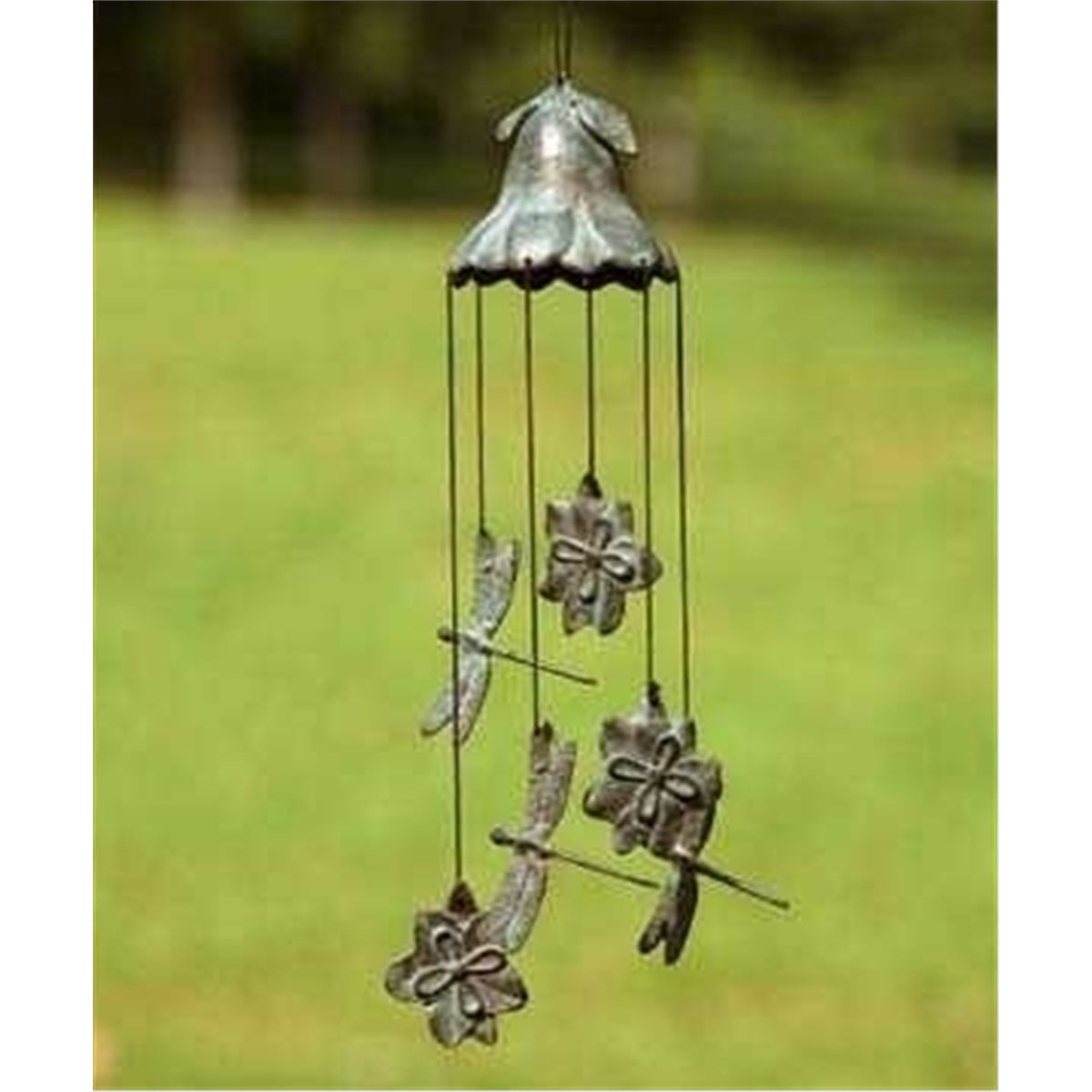 Magnolia & Dragonfly Wind Chime - 16"H 3.5"W 3.5"D - Brass Wind Chime
