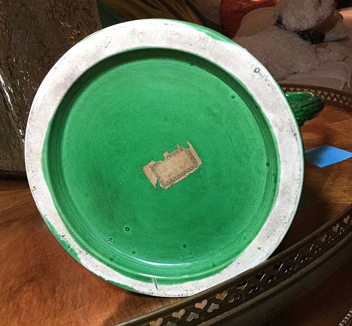 Magolica pitcher green with iris' and Brown Jasperware Pitcher, both beautiful! Global Views/Portugal vase, and Floraline USA vase. MUST be picked up or shipped from Port Chester, New York. We can arrange for the appropriate shippers, if necessary, to handle this lot.