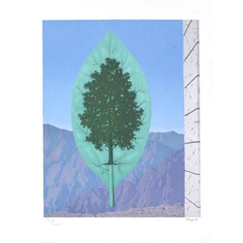 Notes:Lithograph after (d'apres) Magritte, facsimile signed with Magritte Estate watermark, authorized by ADAGP, France. Printed on pure chiffon, Velin de Rives, 300 gr/square meter. This image was recreated by a master engraver and required over eighteen passes through a flat-bed lithographic press to be completed. Each print is signed in the plate, stamped with the seal of the Magriite Estate and signed by the publisher on the verso. This is part of an editon of 300 and measures 30 3/4 x 22 3/4 inches. From a private collection, the painting was made in 1967. The tree is in the leaf! Magritte succeeds in changing the perception of nature by allowing the eye to have a pure vision of the exterior world. It's a matter of awakening our view of habitual things and our fellow-men.