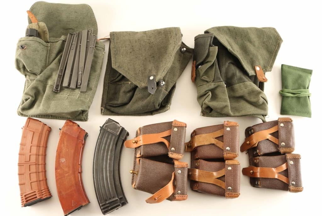 Including (1) Tapco mags for AK-74, and (2) other AK mags, (3) olive green pouches, (3) brown leather pouches-some pouches have oilers and cleaning kits.