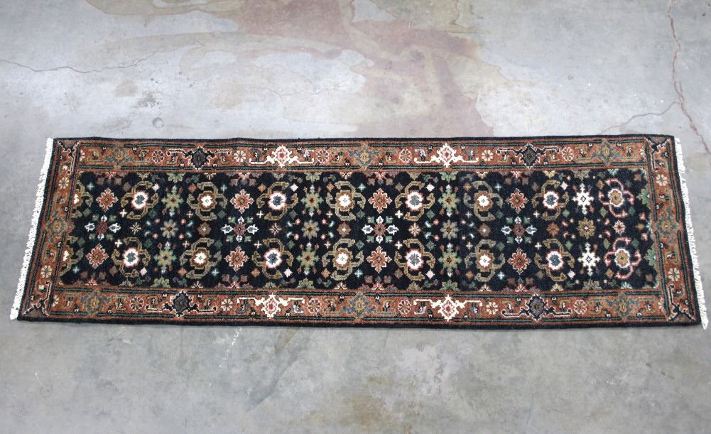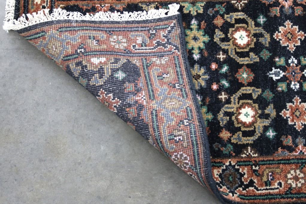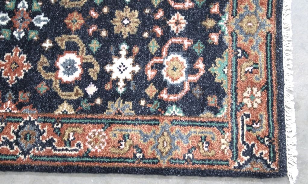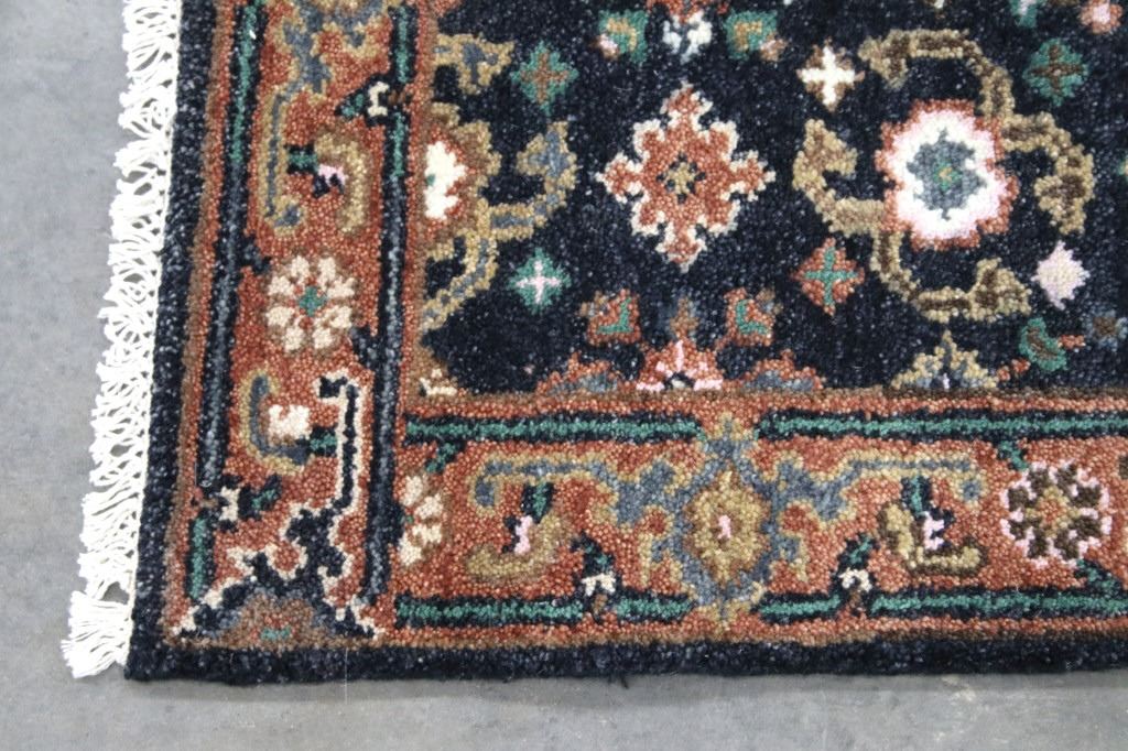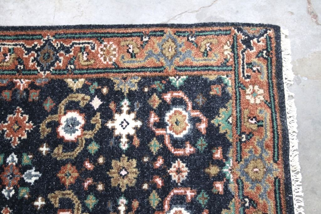 Featured in this lot we have a hand knotted Persian Mahal wool area rug originating from the early 1900's. The rug features a fine detailed design, bright colors, and a tight weave. The Mahal rug is a well known style of Persian rug that features geometric floral patterns and a large medallion. The rug displays geometric floral patterns across the border with a single large geometric medallion at the center of the rug. The piece shows geometric designs mirrored in each corner. The rug predominately a bright red, blue, yellow, green, white, brown, orange, pink, and black. The rug shows short white tassels along the ends of the piece. The piece shows good condition overall with little wear and use. The rug measures 39 1/2" wide by 98" long.