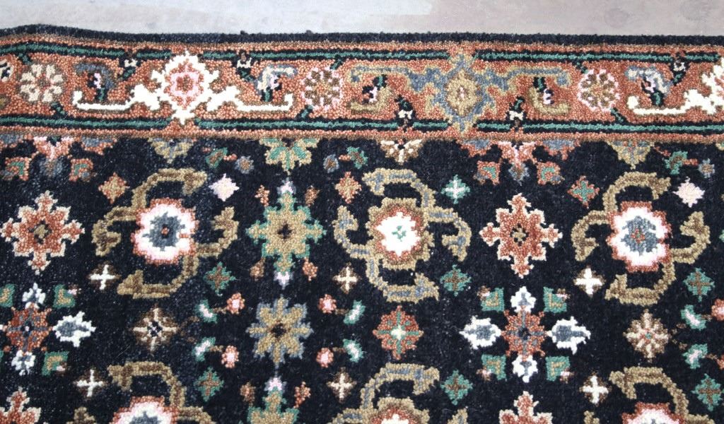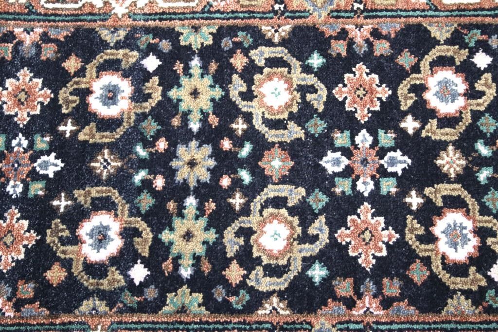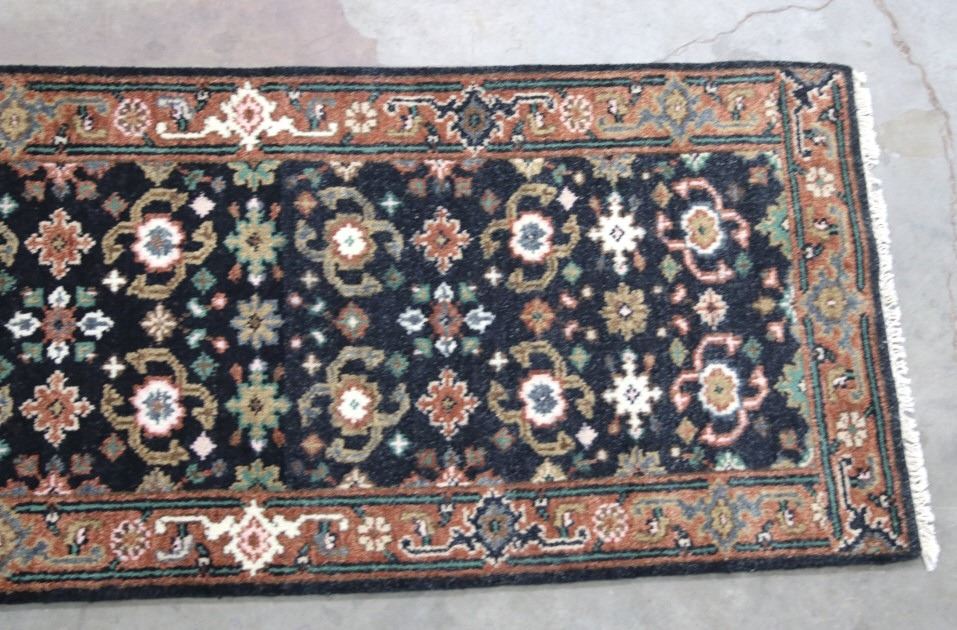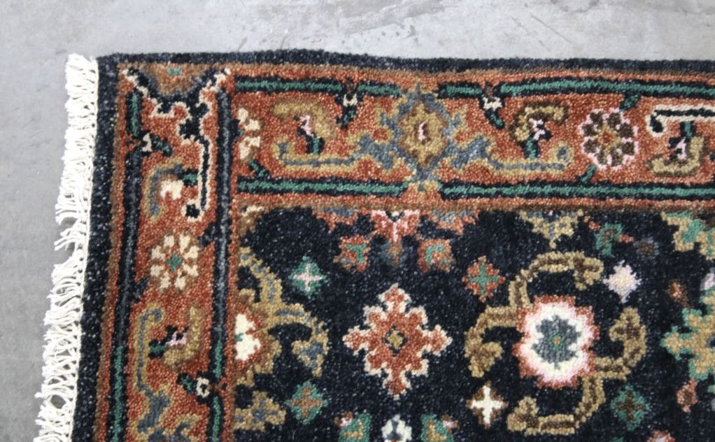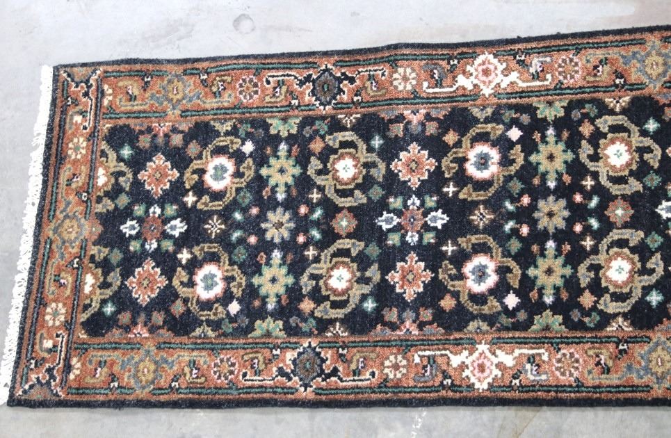 Featured in this lot we have a hand knotted Persian Mahal wool area rug originating from the early 1900's. The rug features a fine detailed design, bright colors, and a tight weave. The Mahal rug is a well known style of Persian rug that features geometric floral patterns and a large medallion. The rug displays geometric floral patterns across the border with a single large geometric medallion at the center of the rug. The piece shows geometric designs mirrored in each corner. The rug predominately a bright red, blue, yellow, green, white, brown, orange, pink, and black. The rug shows short white tassels along the ends of the piece. The piece shows good condition overall with little wear and use. The rug measures 39 1/2" wide by 98" long.