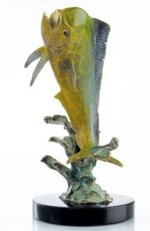 Mahi Mahi Bronze Sculpture - 9.5"H 6"W 5 "D - Great Attention To Detail - Beautiful Finish - Lost Wax Cast