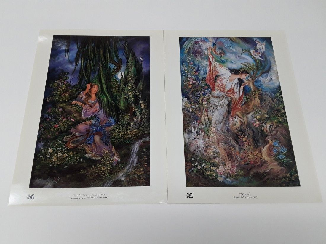 10 vibrant full colour prints of Mahmoud Farschian's paintings. Each- 9" x 16".