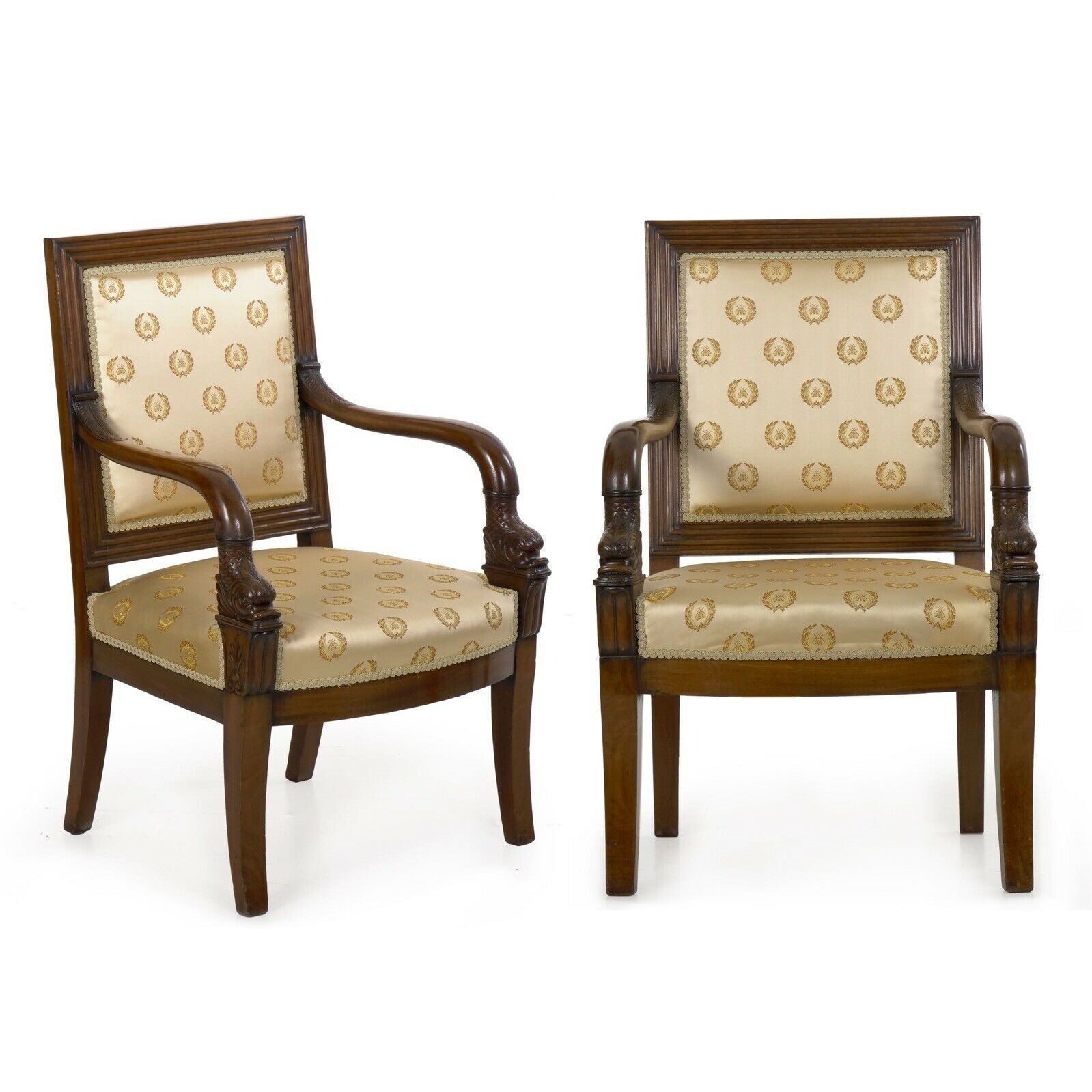 French Pair of Louis Phillipe Carved Mahogany Antique Arm Chairs,It was created by skilled craftsmen in traditional style with fine handcrafts. the handwork is very fine with incredible detailling. This is a great piece of valuable collection, a valuable personal alter or a very good present. Don't miss out this chance to get it .Good luck to you!