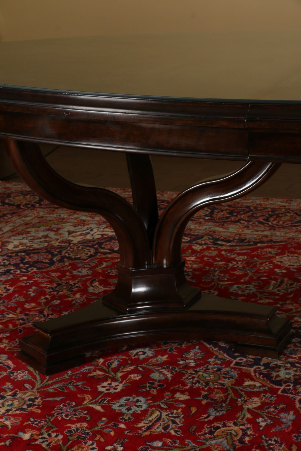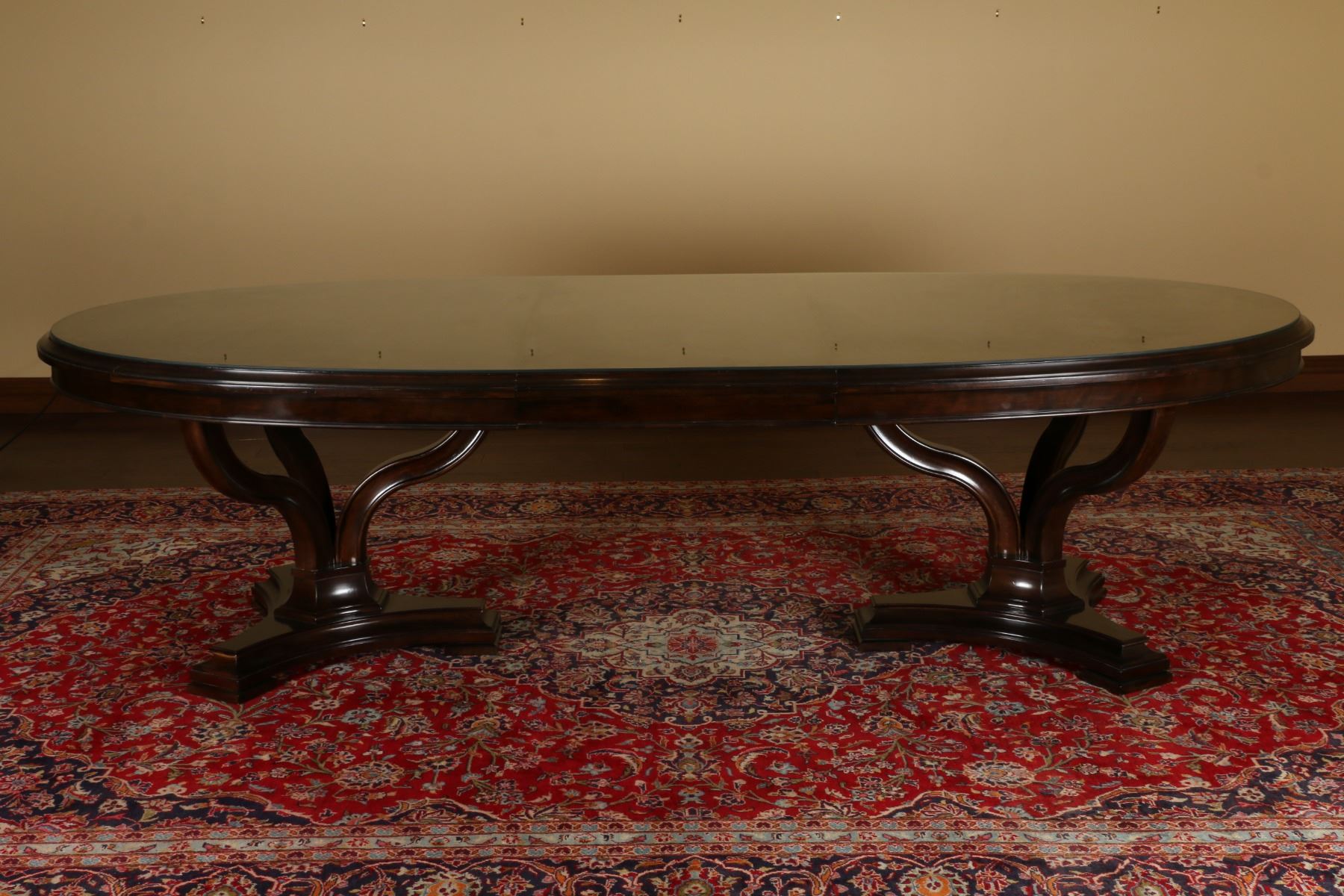 Stanley Furniture Company, North Carolina. Contemporary. Fitted with custom glass top. 108" x 50" x 30.5". 2000-3000.