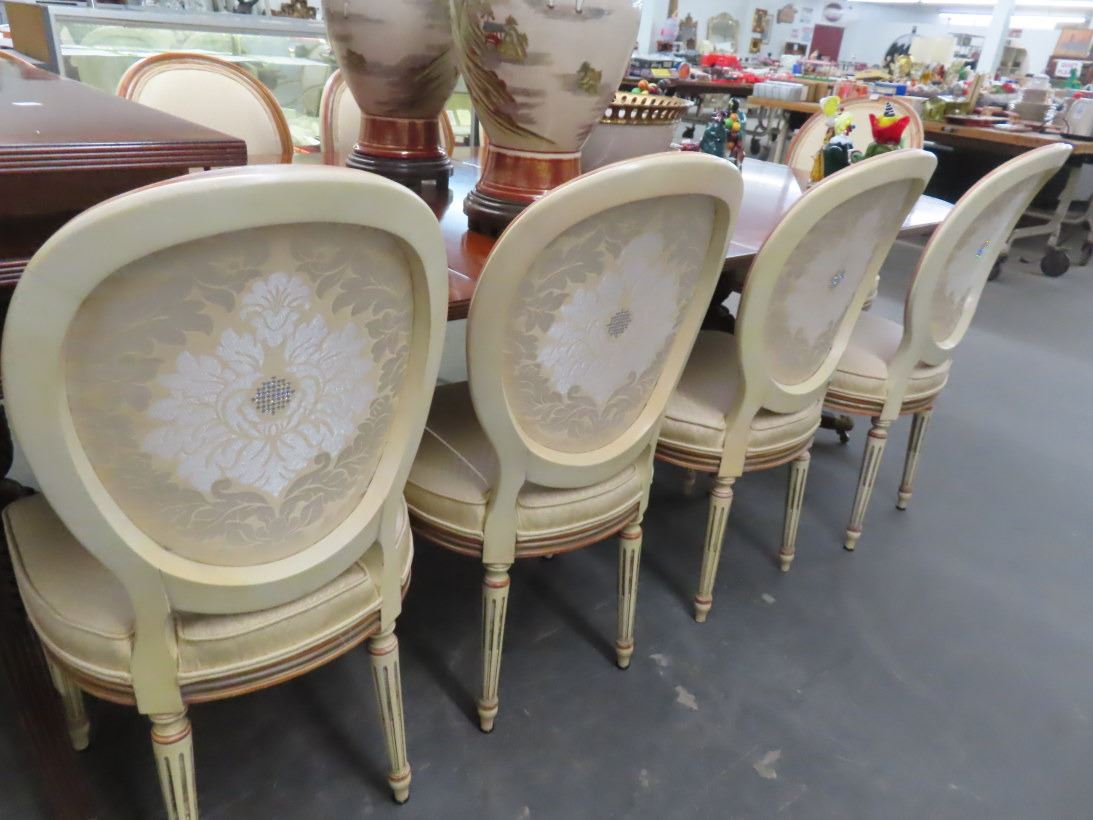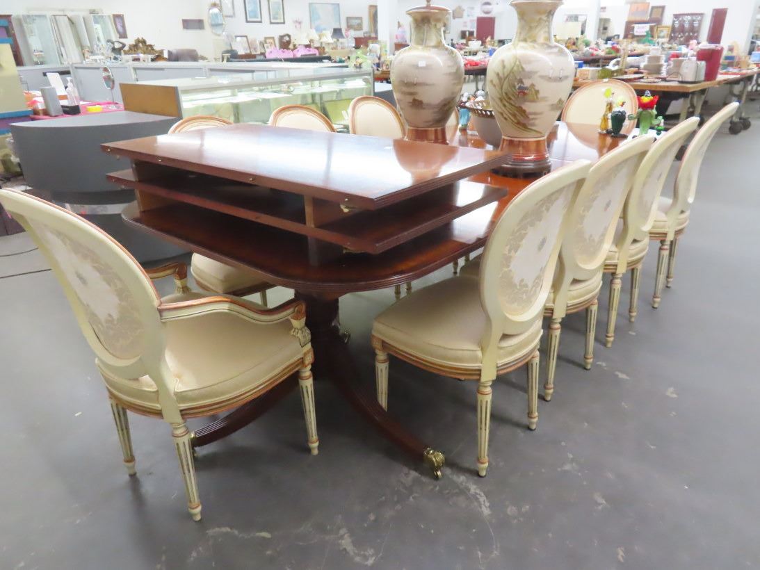 Mahogany Burl Trim Double Pedestal Claw Foot Table w/10 Chairs & 3 Leaves