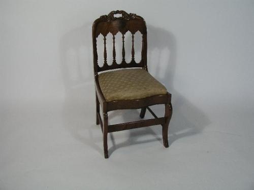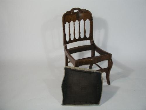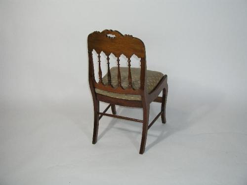 Mahogany chair with light green and beige silk cushion, 24" by 16 3/4" by 17 1/2"