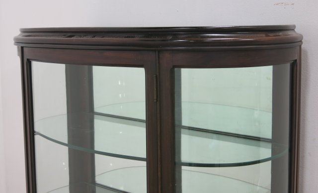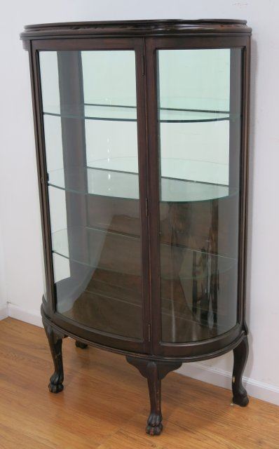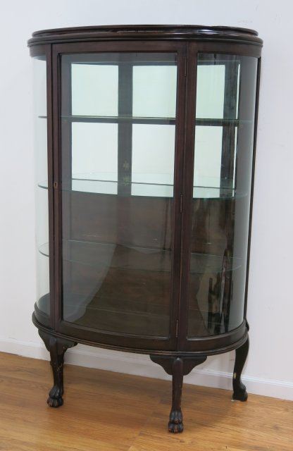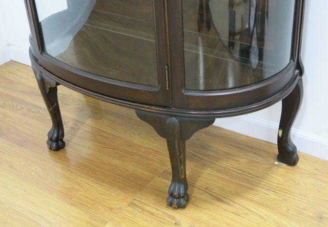 With claw feet, glass shelves. Approx. 63 1/2" high, 37 1/2" wide, 17" deep.