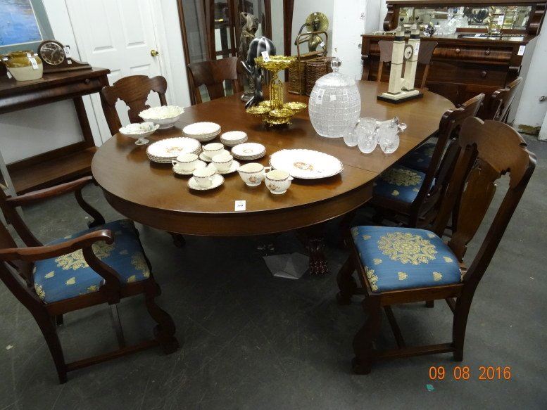 Mahogany Dining Room Table & 8 Chairs & 2 Leafs