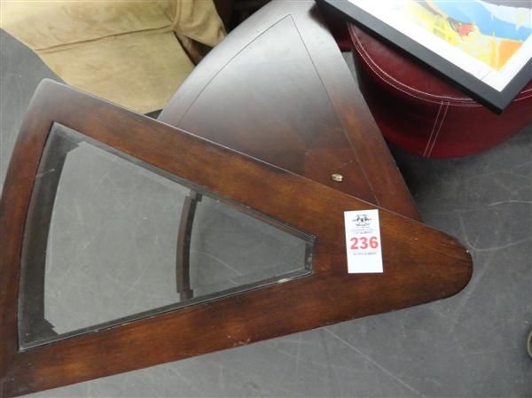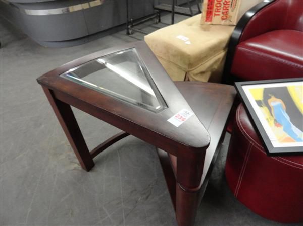 Mahogany Glass Inset Pie Shaped End Table