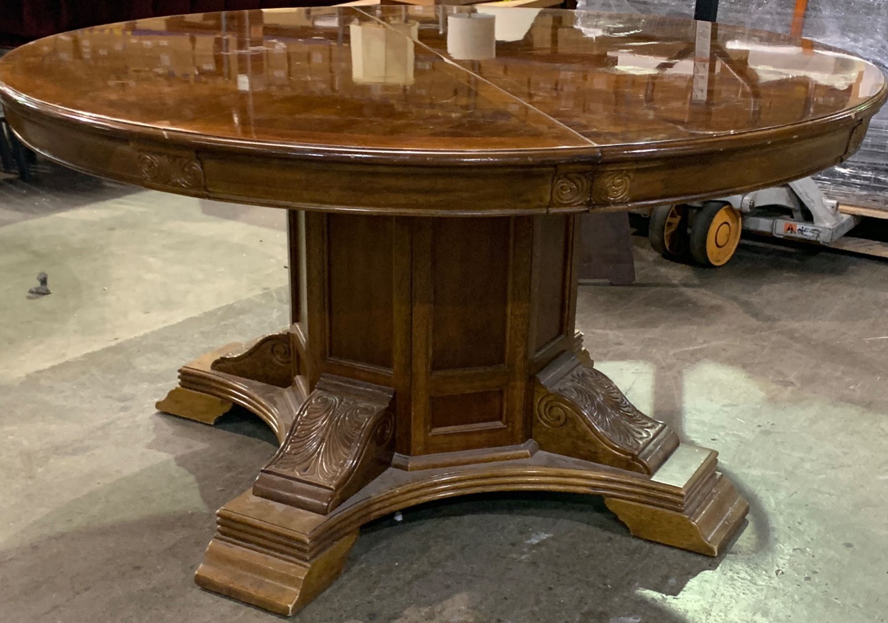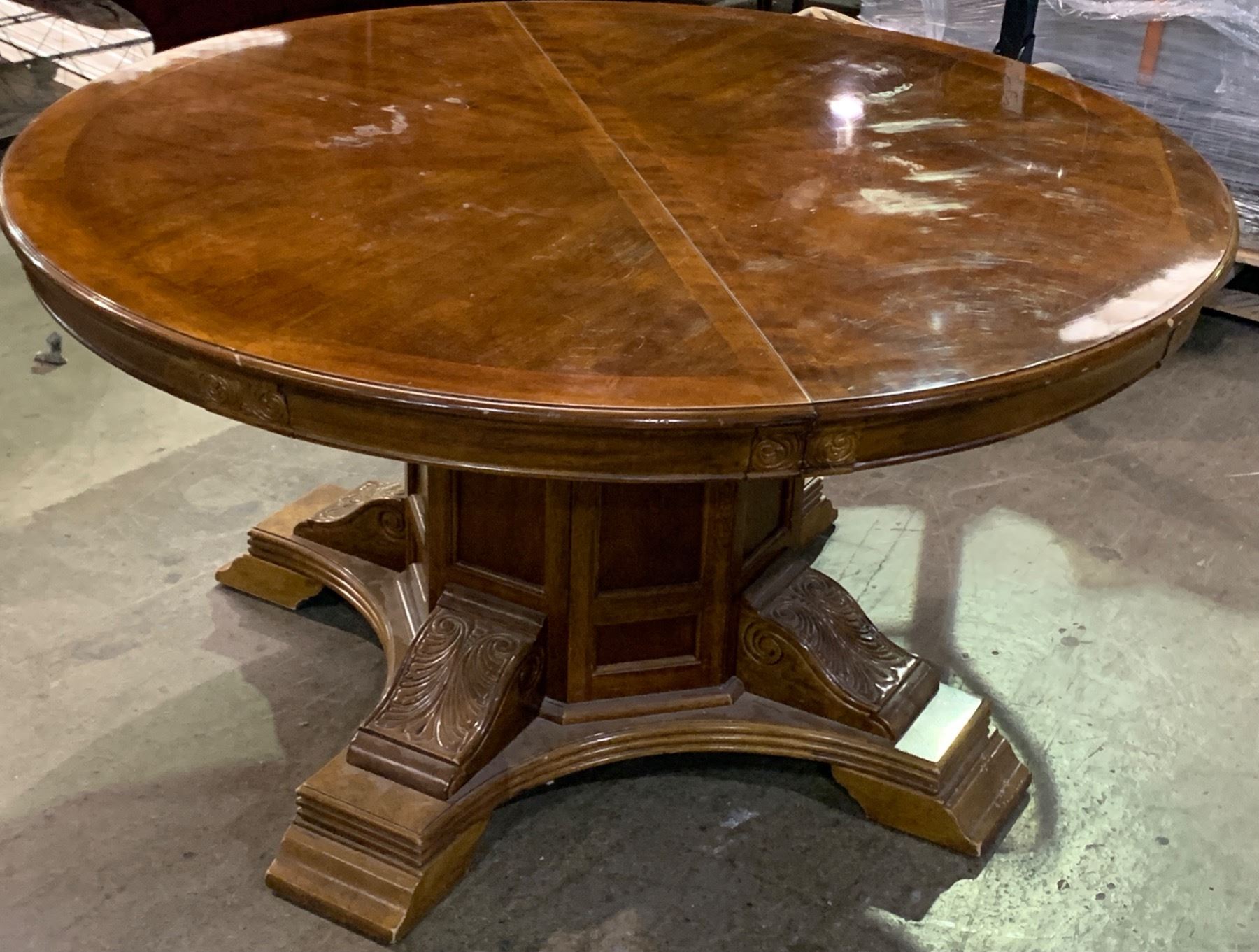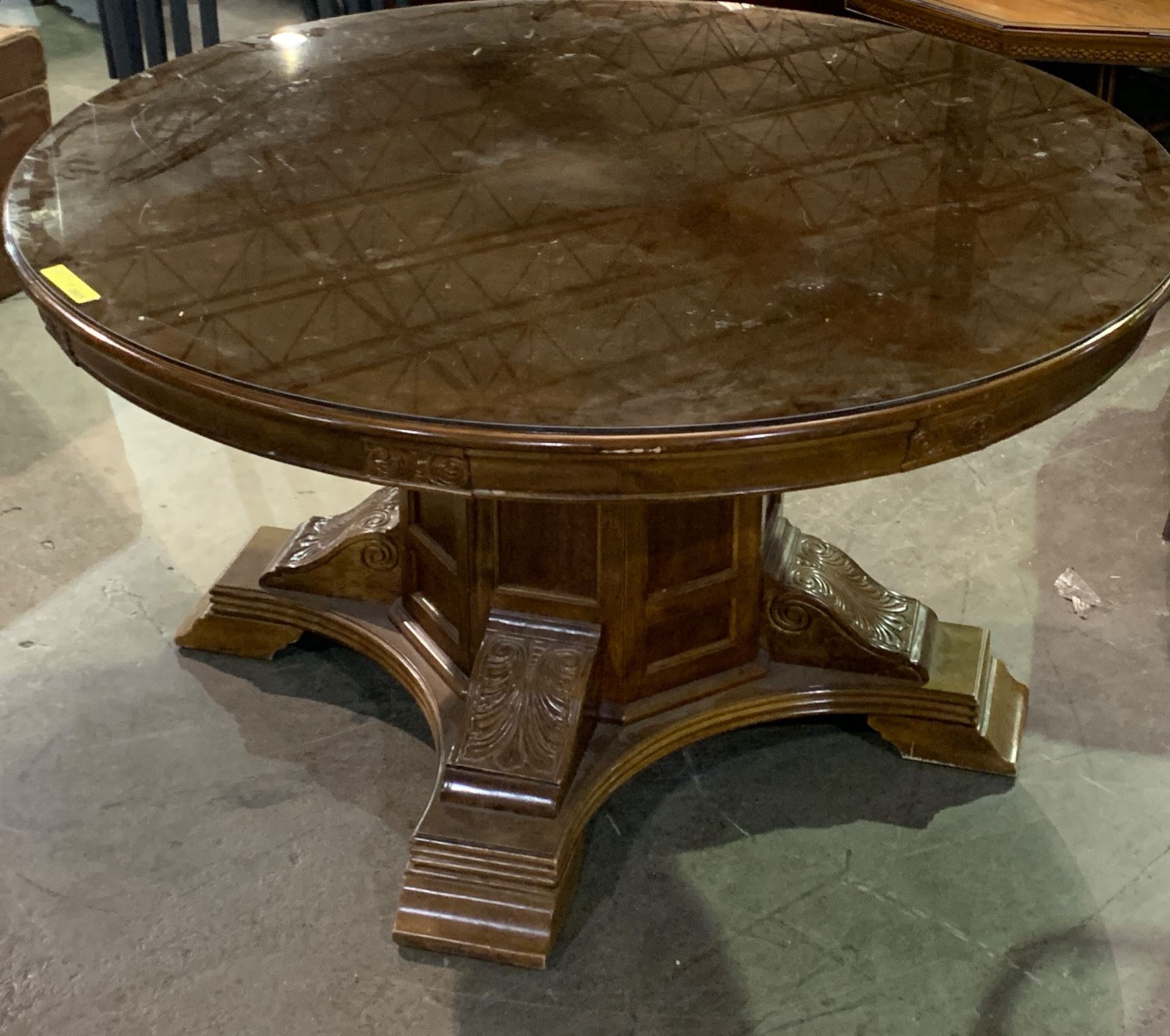 Mahogany Pedestal Dining Table 54in. Round with glass top