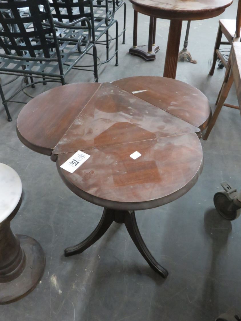 Mahogany Pedestal Triple Drop Leaf Table