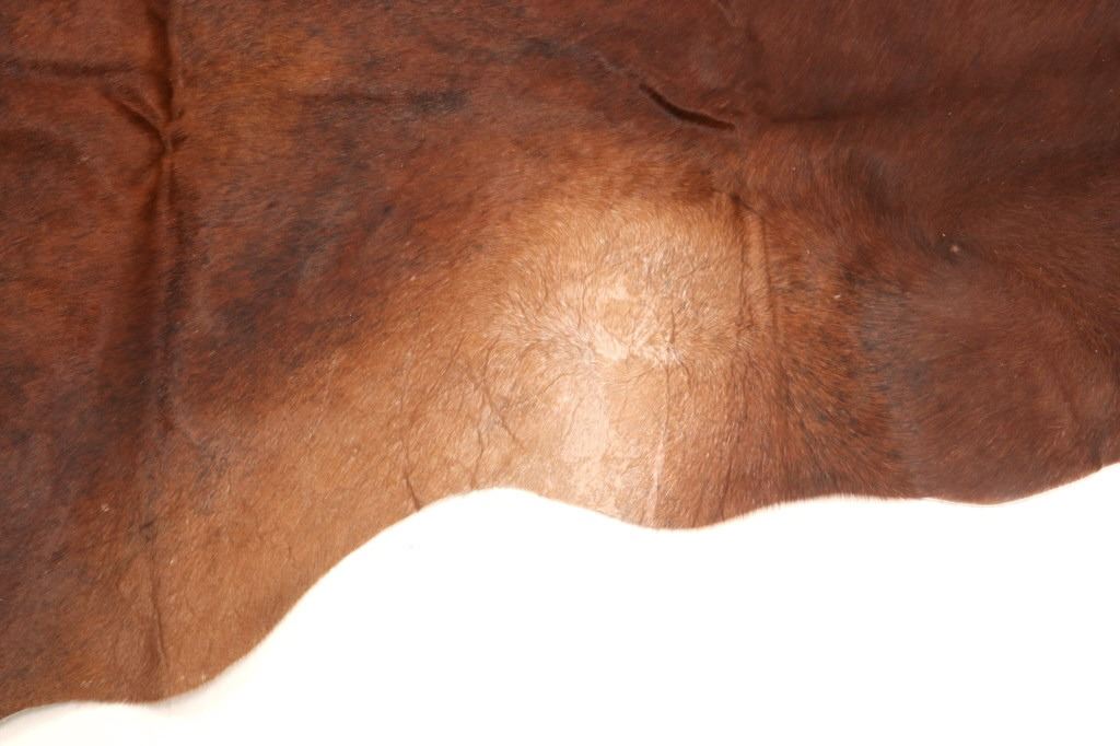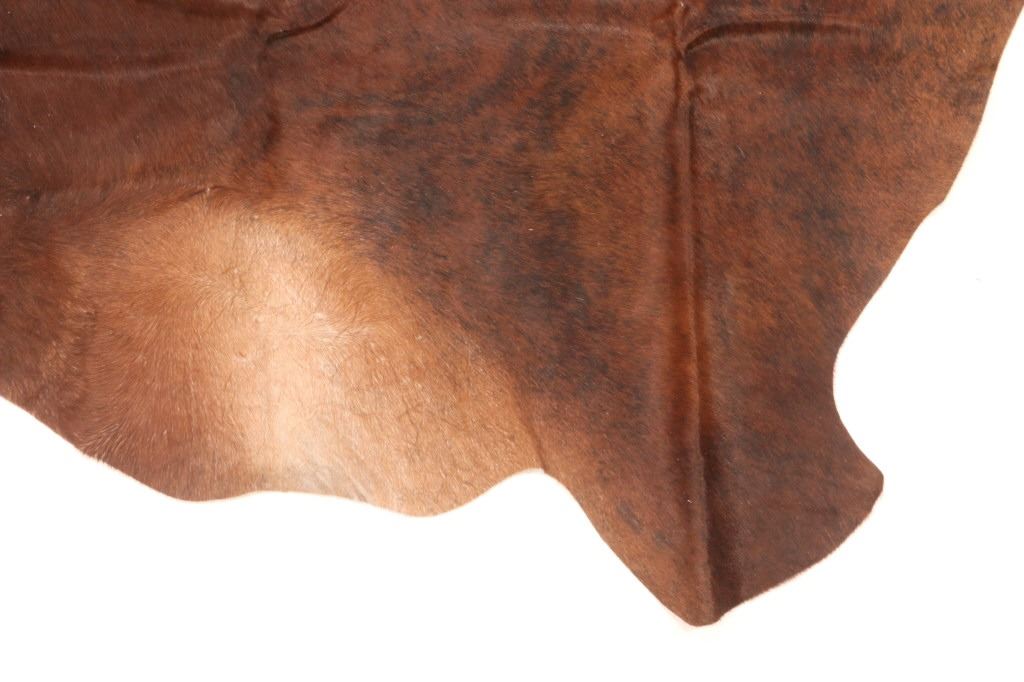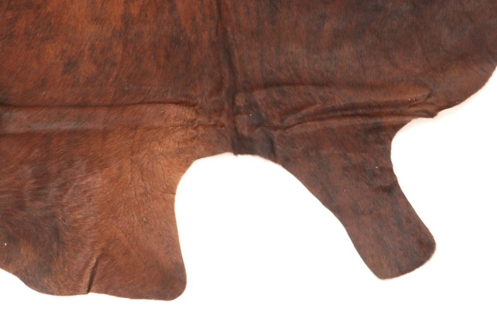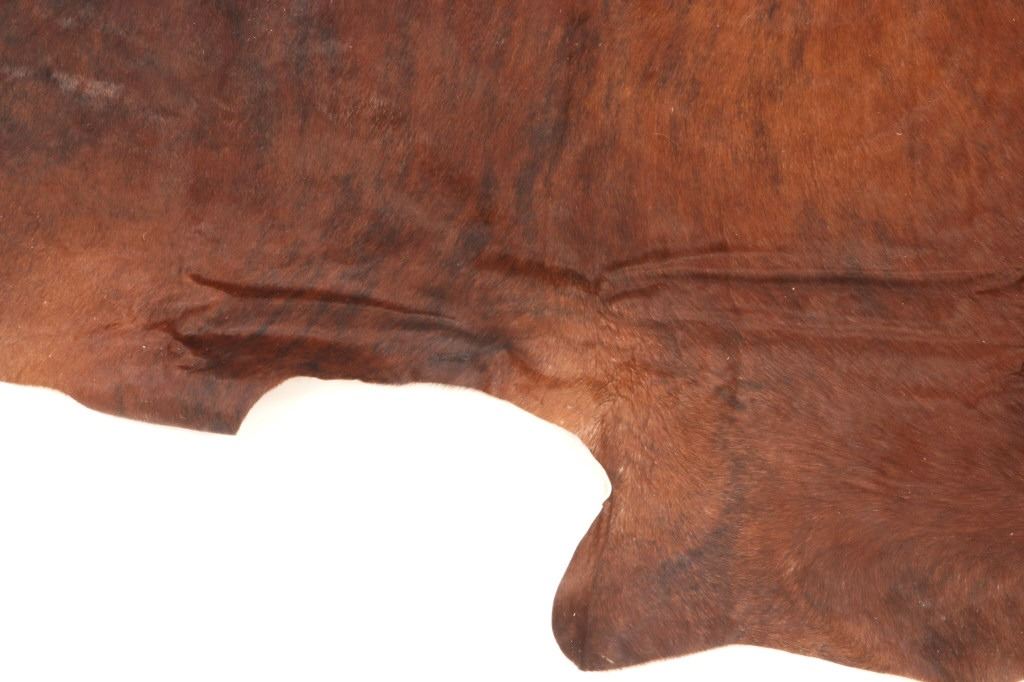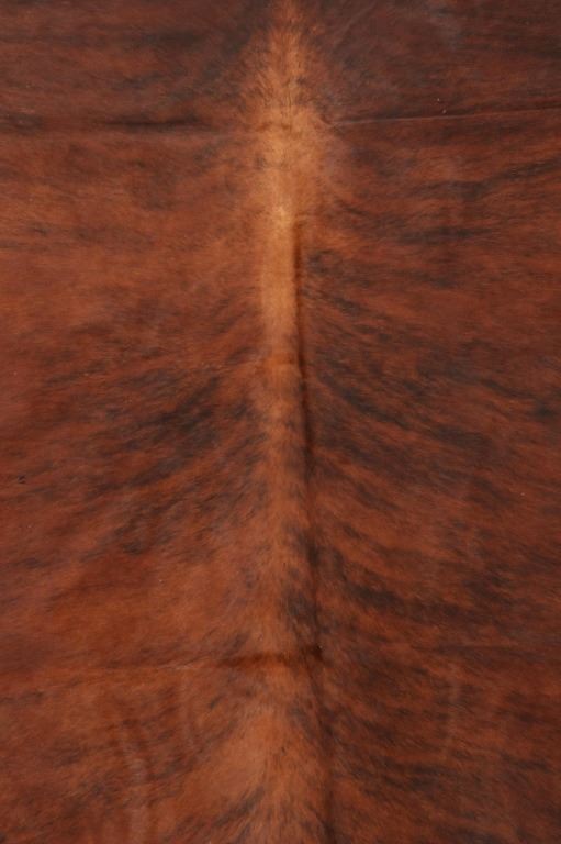 This is an excellent, premium cowhide rug with beautiful mahogany red and black brindle coloring. The hide shows thick hair coverage. Cowhide rugs have shown themselves to be a wonderful addition to any style of home. The cowhide (also referred to as cow hide, steer hide, steer hide) is a brand-new example, being professionally tanned and in pristine condition. The rug is also considered an Extra-Large (XL) to Extra-Extra-Large (XXL) size, being 8 feet 4 inches long by 6 feet 10 inches wide.