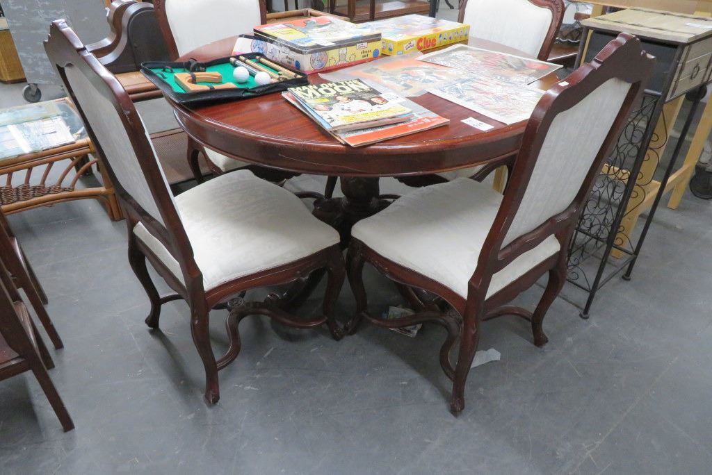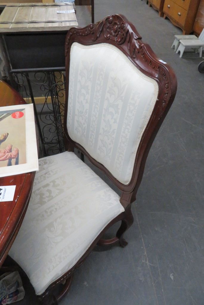 Mahogany Round Dining Set w/4 Padded White Fabric Chairs