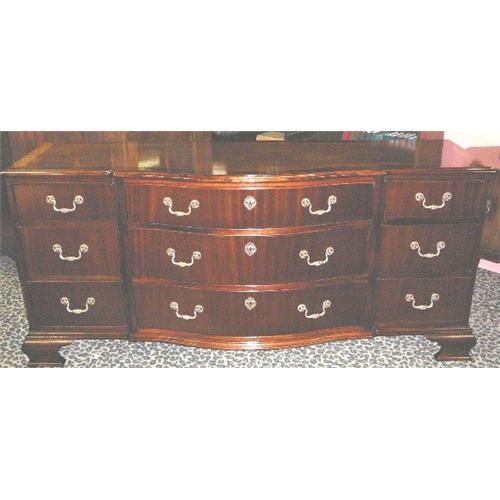 This is a wonderful American Mahogany Sideboard with a banded inlaid top, bracket feet and nine drawers...three on the left side, three large drawers in the centerand three on the right side.