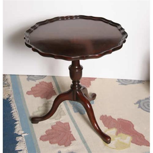 Description: Regency style with pie crust rim on three down-swept saber legs with pad feet.