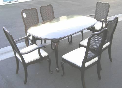 Fine Ethan Allen mahogany d/r table, 2 leaves, 6 chairs, upholstered. Great condition.. (13-18)