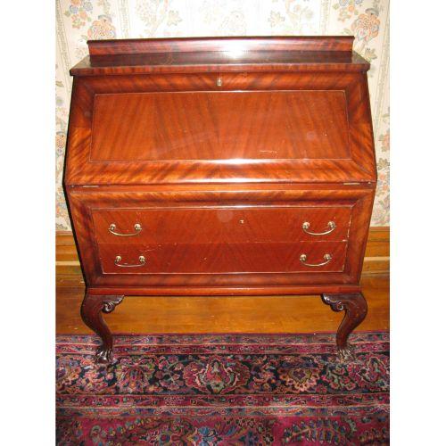 Mahogany ball and claw drop front desk, 42" tall, scratches