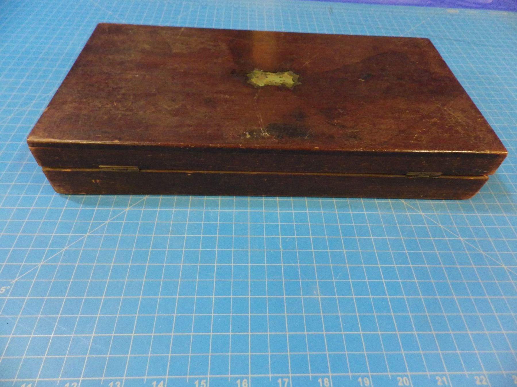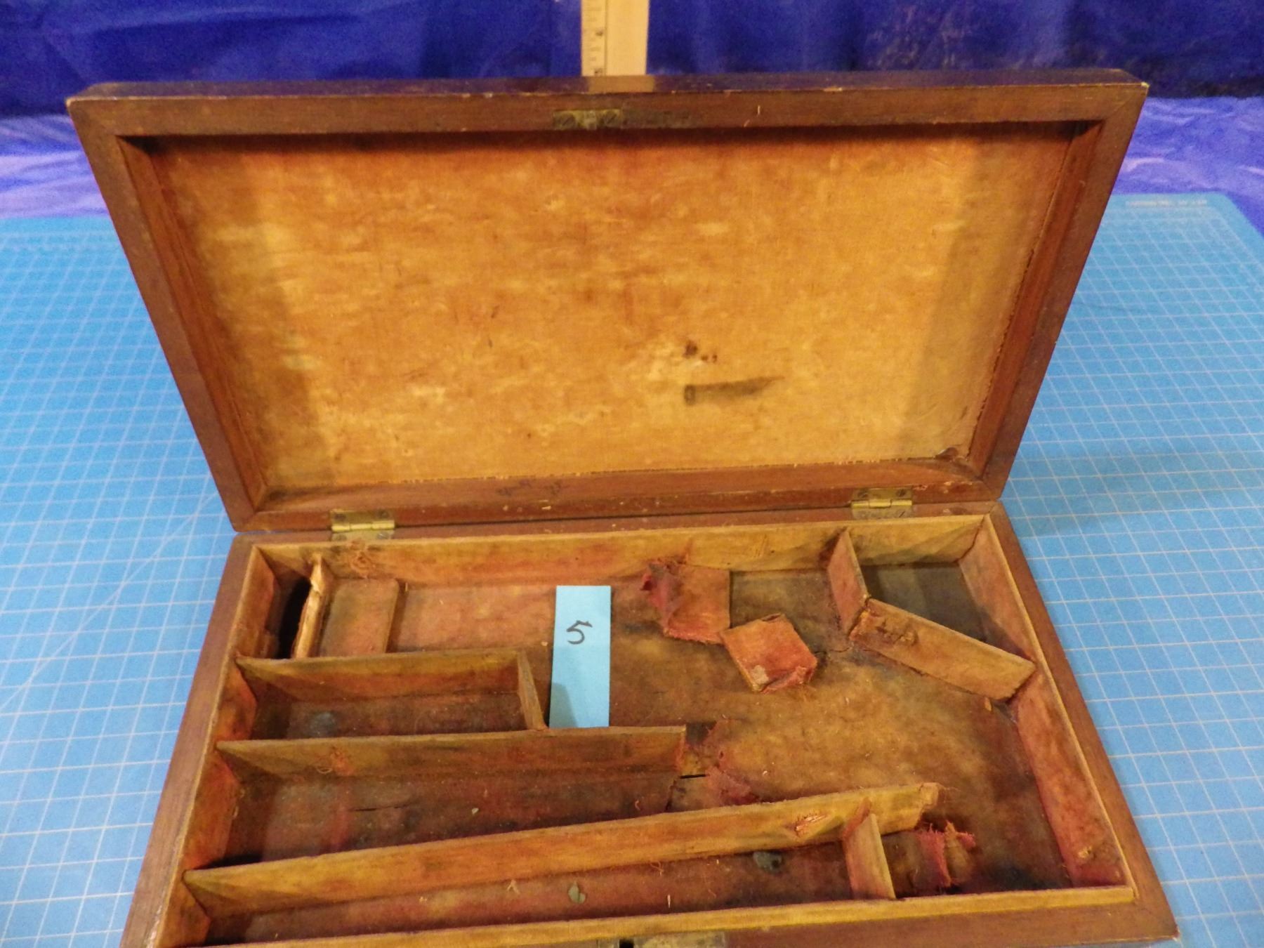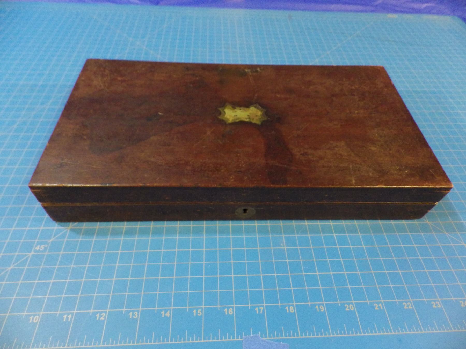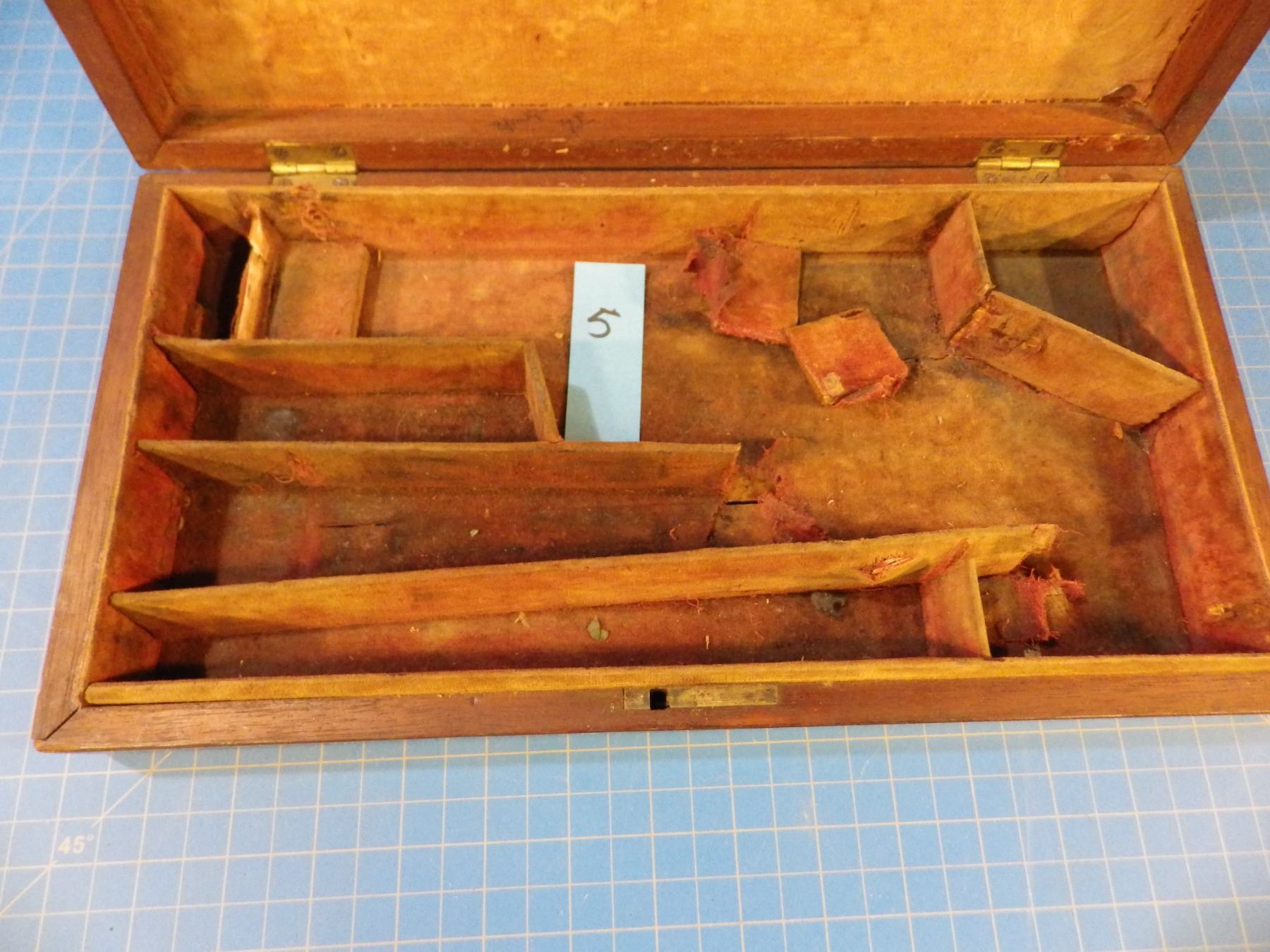 Mahogany case, 14 1/4" x 7 1/2" x 2 1/4", fitted for a large revolver, no key - CONSIGN # PC 5