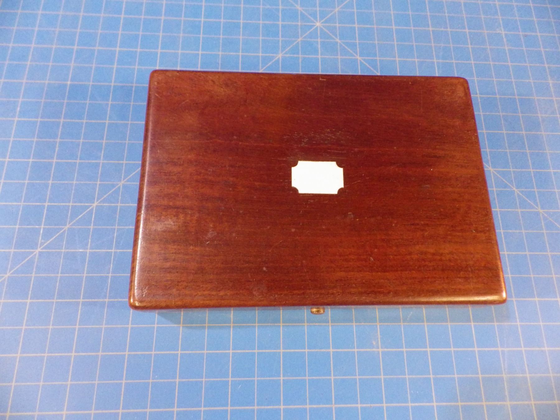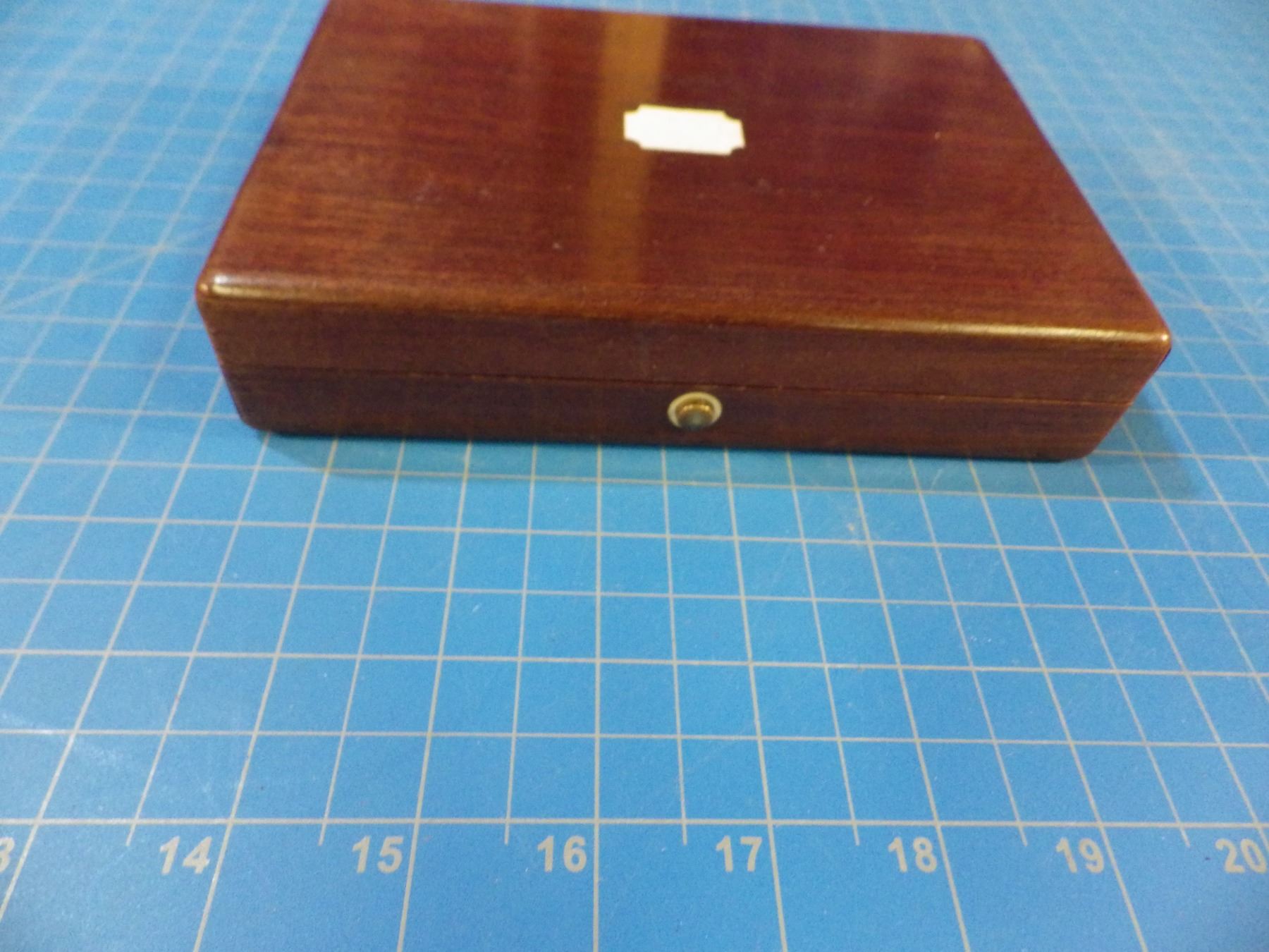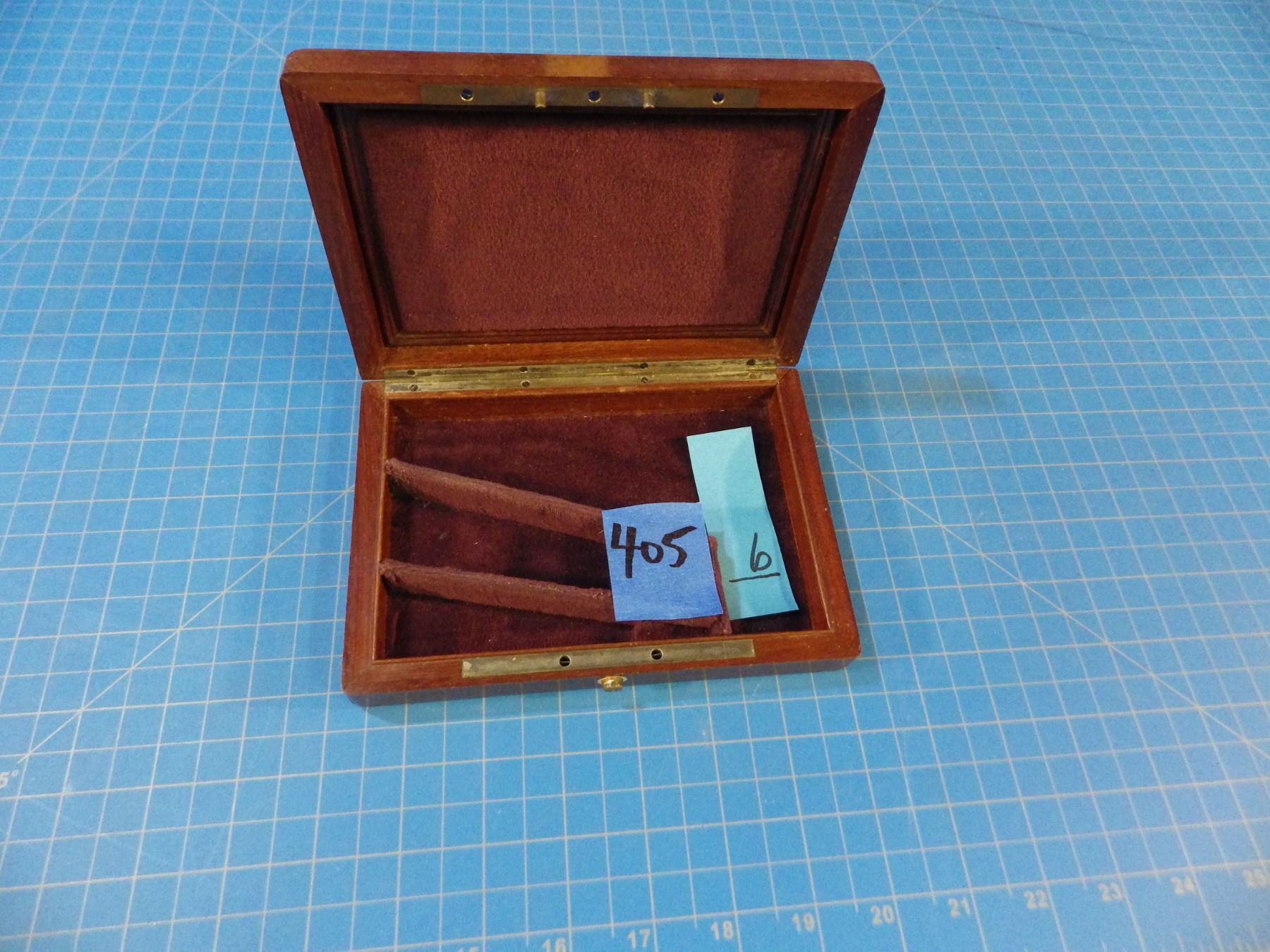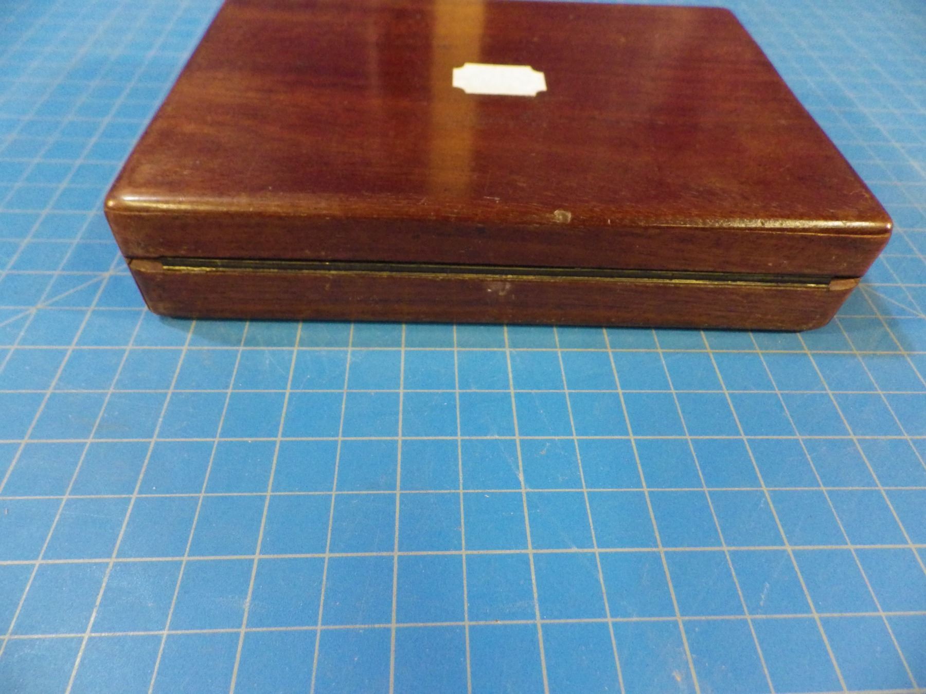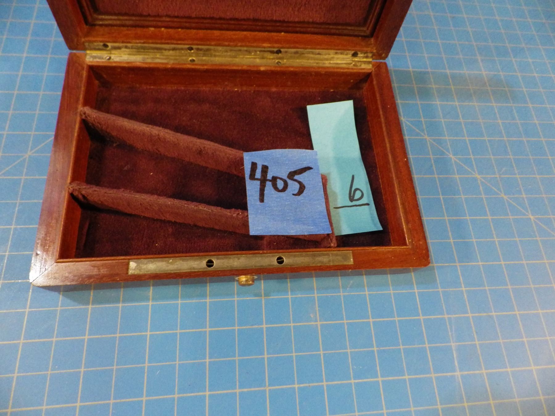 Mahogany case, 5" x 6 1/2" x 1 1/4" fitted for a very small pistol, no key or label - CONSIGN # PC 6