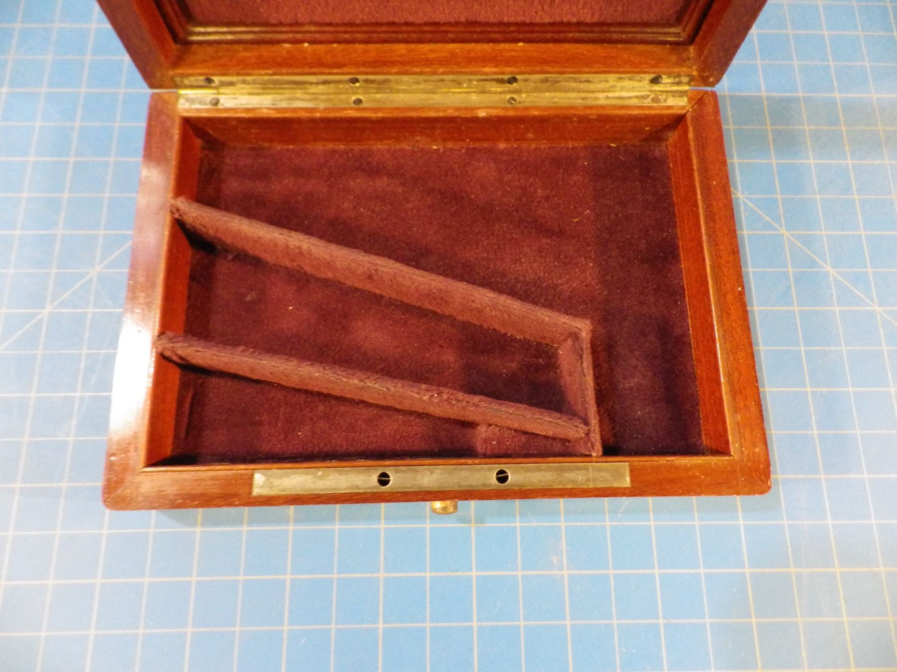 Mahogany case, 5" x 6 1/2" x 1 1/4" fitted for a very small pistol, no key or label - CONSIGN # PC