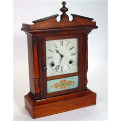 Mahogany cased Victorian American chiming mantel clock with broken pediment, 44cm high