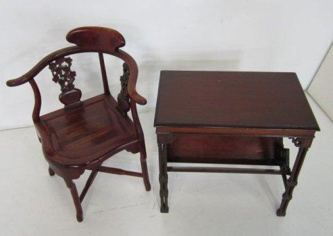 Chair is in the Asian taste. Mahogany Chinese Chippendale side table is approx. 24.5" x 16" x 25.5". Please read our terms of sale.