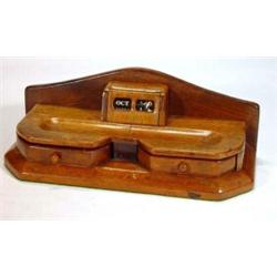 Mahogany desk stand with calendar and two drawers, 26cm in length