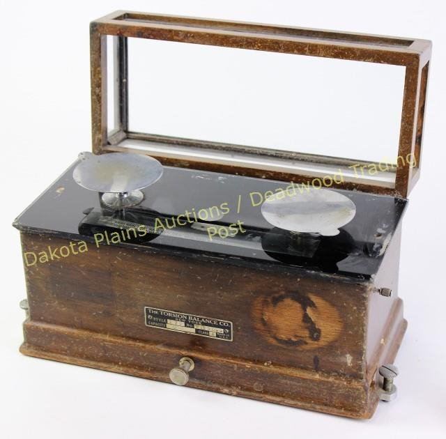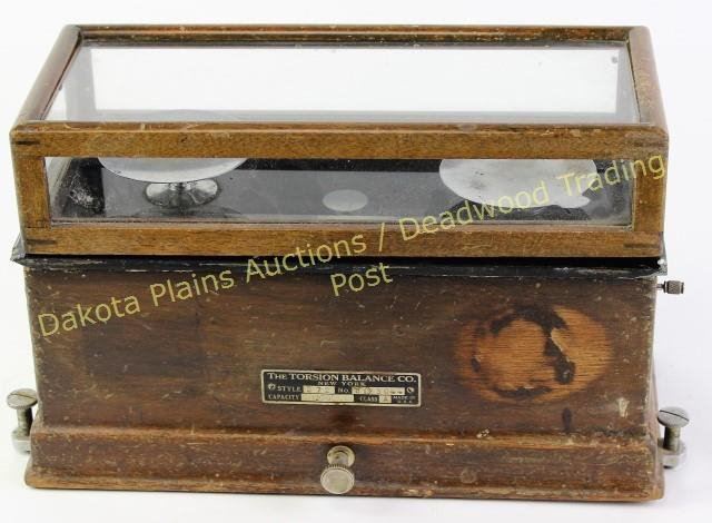 made by Torsion Balance Co. New York, working order with original pans, shows some loss to the original finish on the wood. Est. 50-100