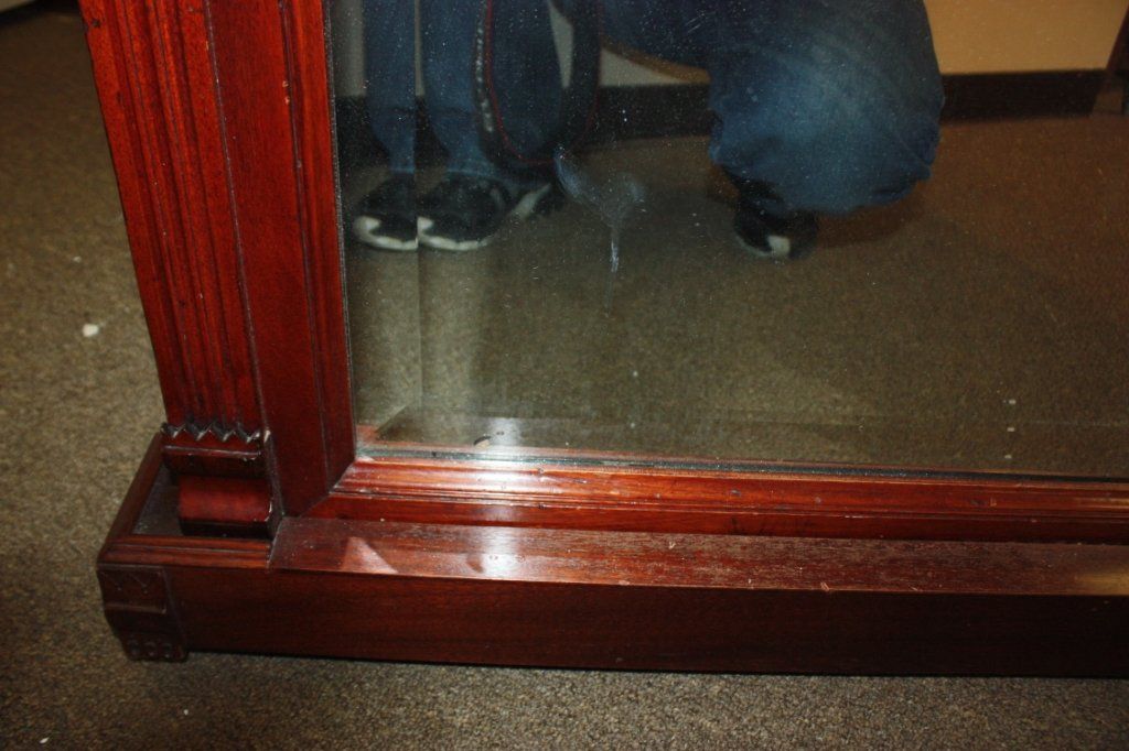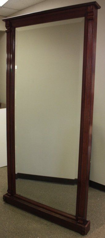 Mahogany Federal style mirror. Late 19th/early 20th century. Cornice top over mirrored glass. 7' x 45"w.