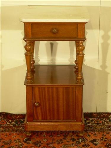 Mahogany nightstand, w/ marble type top, 1 drawer, cabinet bottom