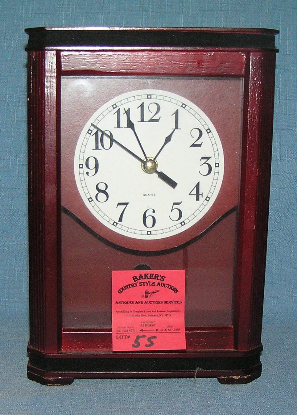 Mahogany quartz clock est. value $30.00-$35.00