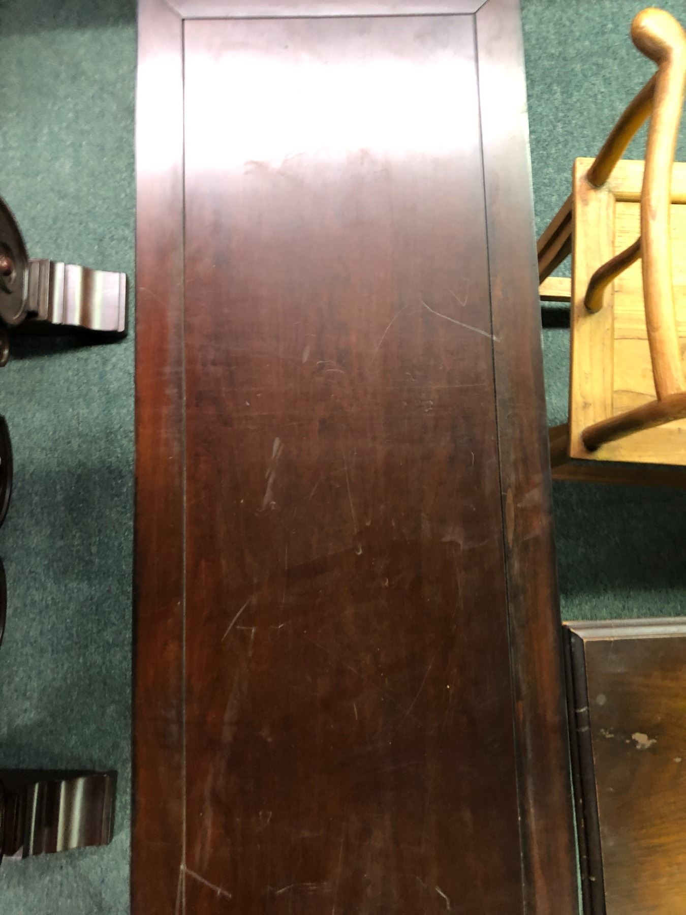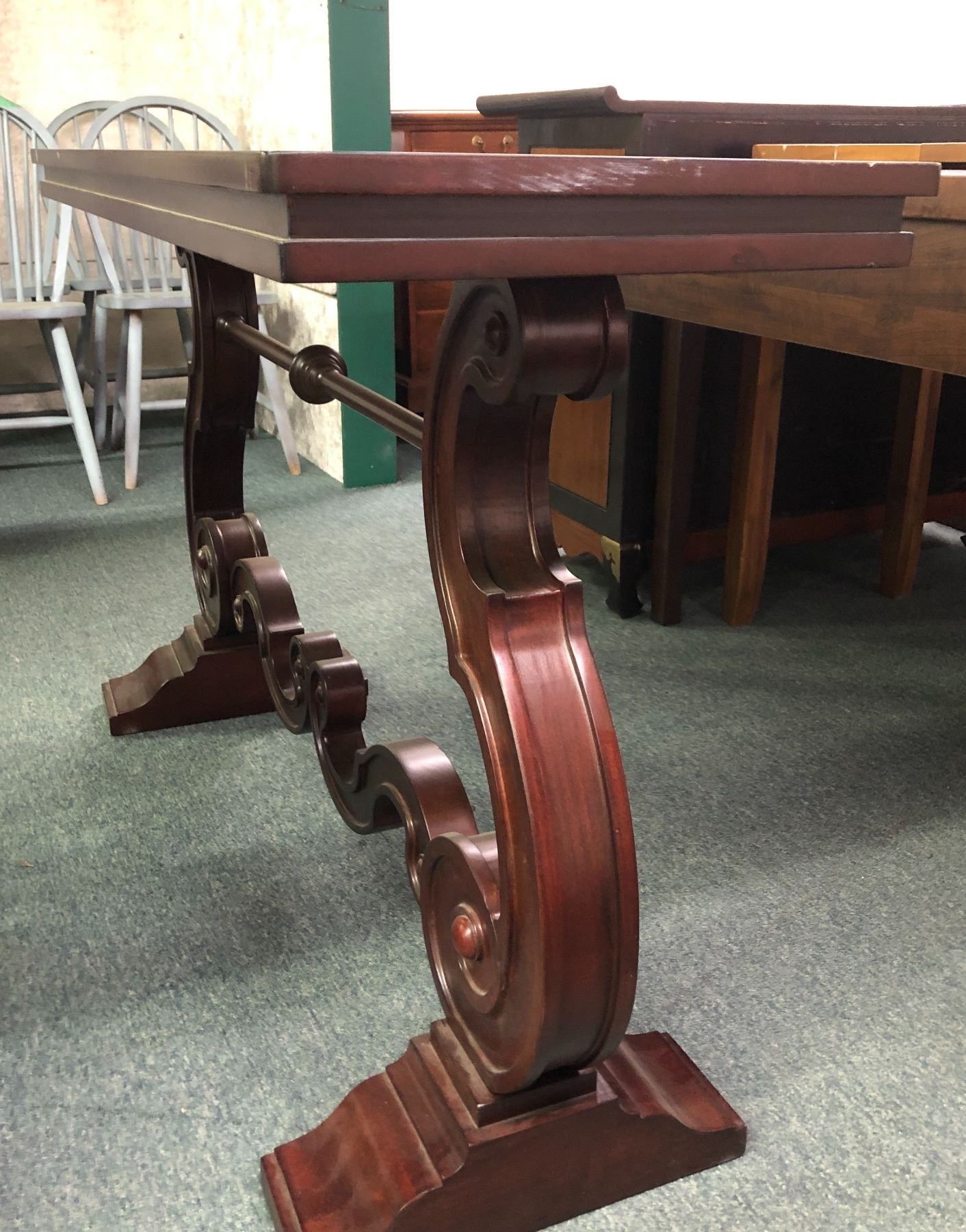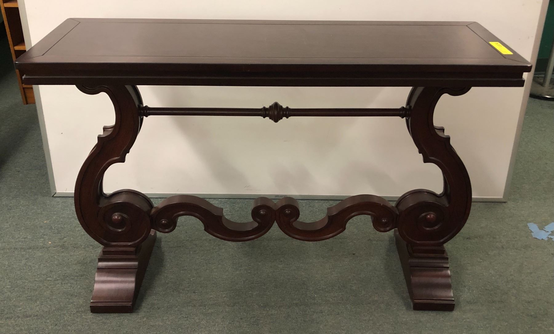 Mahogany stretcher base sofa table 48in W 16in D 31in H