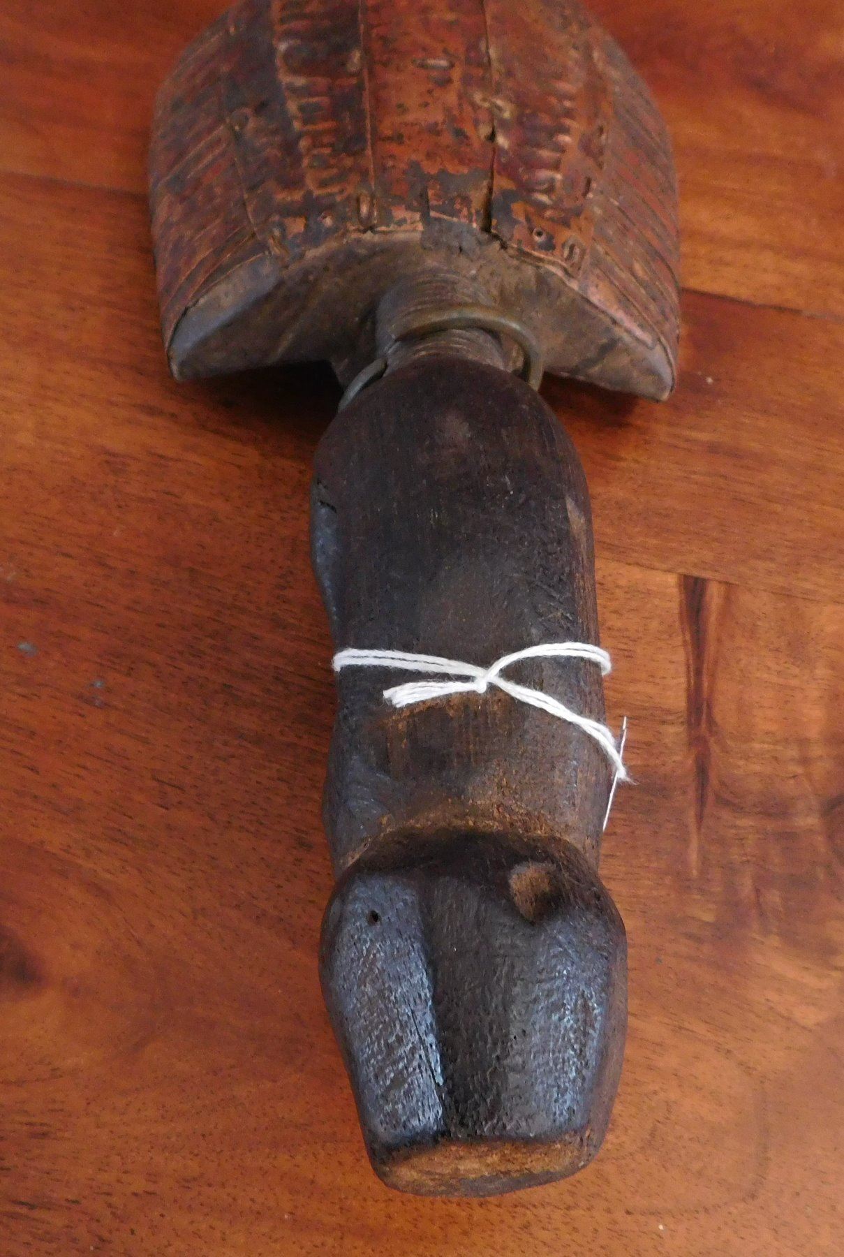 Mahongwe Reliquary, early 20th century item. Made of wood and brass, the item measures 6.5" x 17". Cameroon. Fancy carving with fine metal work. Condition: Good, nice patina, see images. Shipping: $30.00 w/insurance and signature, due to size and weight.