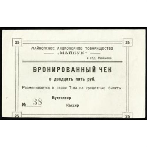 <style type="text/css"> body, td, th { font-family: Arial, Helvetica, sans-serif; font-size: 12px; color: #482424; margin: 0px; padding: 0px; } #header { background-image: url(http://www.bowersandmerena.com/ebay/images/template_v3_01.gif); clear: both; background-color: #590303; border-top-width: 2px; border-top-style: solid; border-top-color: #B38C4F; } #header #header_wrapper { height: 75px; clear: both; width: 800px; margin-right: auto; margin-left: auto; background-image: url(http://www.bowersandmerena.com/ebay/images/template_v3_03.gif); background-repeat: no-repeat; background-position: right; color: #F3EDCC; } #header #header_wrapper #header_logo { float: left; height: 75px; width: 444px; background-image: url(http://www.bowersandmerena.com/ebay/images/template_v3_02.gif); background-repeat: no-repeat; font-size: 10px; text-transform: capitalize; color: #B38C4F; } #header #header_wrapper #header_right { float: left; height: 75px; width: 356px; text-align: right; } #header #header_wrapper #header_right #headerLoginBtn { margin-bottom: 30px; } #header #header_wrapper #header_right input#txtSearch { color: #B49056; border: 1px solid #B49056; width: 175px; padding-top: 3px; padding-right: 3px; padding-bottom: 4px; padding-left: 3px; } #nav { height: 37px; background-image: url(http://www.bowersandmerena.com/ebay/images/template_v3_05.gif); clear: both; } #nav #nav_wrapper { height: 35px; width: 800px; margin-right: auto; margin-left: auto; border-left-width: 1px; border-left-style: solid; border-left-color: #B38C4F; } #nav #nav_wrapper a { padding-right: 15px; padding-left: 15px; border-right-width: 1px; border-right-style: solid; border-right-color: #B38C4F; height: 25px; padding-top: 10px; display: block; float: left; text-decoration: none; font-weight: bold; color: #5D0303; } #nav #nav_wrapper a:hover { color: #B38C4F; } #nav #nav_wrapper #search { float: right; padding-top: 7px; } #nav #nav_wrapper #search #txtSearch { font-family: Arial, Helvetica, sans-serif; font-size: 10px; text-transform: uppercase; color: #D2AE75; border: 1px solid #B38C4F; padding: 3px; } #content_bgd { background-image: url(http://www.bowersandmerena.com/ebay/images/template_v3_09.gif); background-repeat: repeat-y; background-position: center; padding-top: 15px; padding-bottom: 15px; background-color: #FBFBDB; } #content_wrapper { clear: both; height: auto; width: 800px; margin-right: auto; margin-left: auto; } .LotDetailWhite { line-height:normal; font-size:13px; font-family: arial,helvetica,sans-serif; color: White; font-weight: bold; } .LotDetailInformation { line-height:normal; font-size: 13px; font-family: arial,helvetica,sans-serif; } .LotDetailMessage { line-height:normal; font-size: 13px; font-family: arial,helvetica,sans-serif; color: red; } } tr.HeaderAuctionTitle td { color: #000000; font-weight: bold; padding: 2px; background-image: url(http://www.bowersandmerena.com/ebay/images/template_v3_05.gif); background-repeat: repeat-x; border-bottom-width: 1px; border-bottom-style: solid; border-bottom-color: #B38C4F; } table.AuctionSummary a, table.AuctionSummary a:link, table.AuctionSummary a:visited { color: #0000FF; text-decoration: none; } } td.tableHeaderLeft { border-left-width: 1px; border-left-style: solid; border-left-color: #B38C4F; } td.tableHeaderRight { border-right-width: 1px; border-right-style: solid; border-right-color: #B38C4F; } td.tableCellMiddle { border-left-width: 1px; border-left-style: solid; border-left-color: #B38C4F; border-right-width: 1px; border-right-style: solid; border-right-color: #B38C4F; padding: 5px; } tr.footer td { border-top-width: 1px; border-top-style: solid; border-top-color: #B38C4F; } </style> </head> <body> <div id="header"> <div id="header_wrapper"> <div id="header_logo"> </div> <div id="header_right"> </div> </div> </div> <div id="nav"> <div id="nav_wrapper"> <a href="http://www.bowersandmerena.com">Our eBayLive Auctions</a> <a href="#PaymentInfo">Payment Information</a> <a href="#ShippingInfo">Shipping Information</a> <a href="#About">About Bowers and Merena</a> </div> </div> <div id="content_bgd"> <div id="content_wrapper"> <table width="100%" border="0" cellpadding="5" cellspacing="0" class="AuctionSummary"> <tbody> <tr class="HeaderAuctionTitle" style="height: 25px;"> <td align="left" class="tableHeaderLeft" > </td> <td align="center" class="tableHeaderRight"> <span style="font-size: large;">Lot #2135. North Caucasus. Maicop, Bills of Exchange or Scrip Notes, 1920 Issue.</span> </td> </tr> <tr> <td colspan="3" class="tableCellMiddle"> Lot of 3 notes. 1920. 2, 10, 25 Rubles, Denominations reversed with the small size note the largest denomination. P-Unlisted, CU.