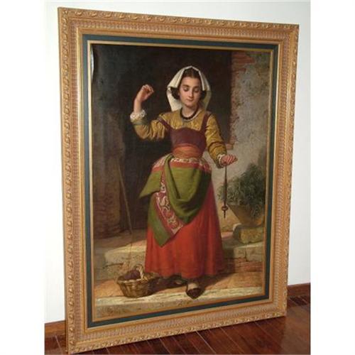 Original oil on canvas painting by DONNER VON RICHTER, Otto (1828-1911), title Young Maid with a Spool of Yarn , large size of Size 132x95.5 cm - ( 52x37 5/8 in),procedence Sotheby's NY , very good conditions, original frame with gold leaves gilding. shipping within US & Europe $ 245