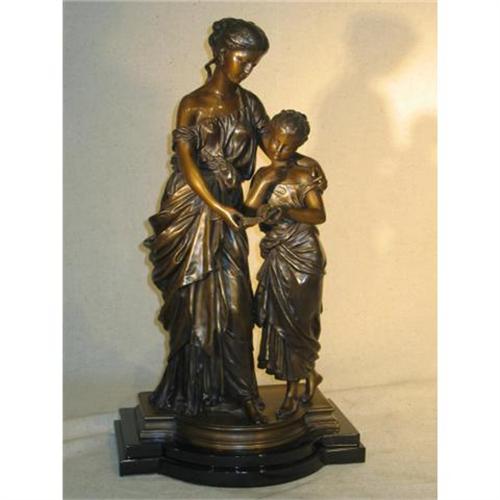 as she is reading and instructing her in a reading lesson. Her hand resting on her shoulder delicately. While she looks on. A fine Quality Reproduction. Made of Bronze with Multi Patinas Mounted on Double Black Marble. Artist: By Morcall 20.50"ht x 11.50"w