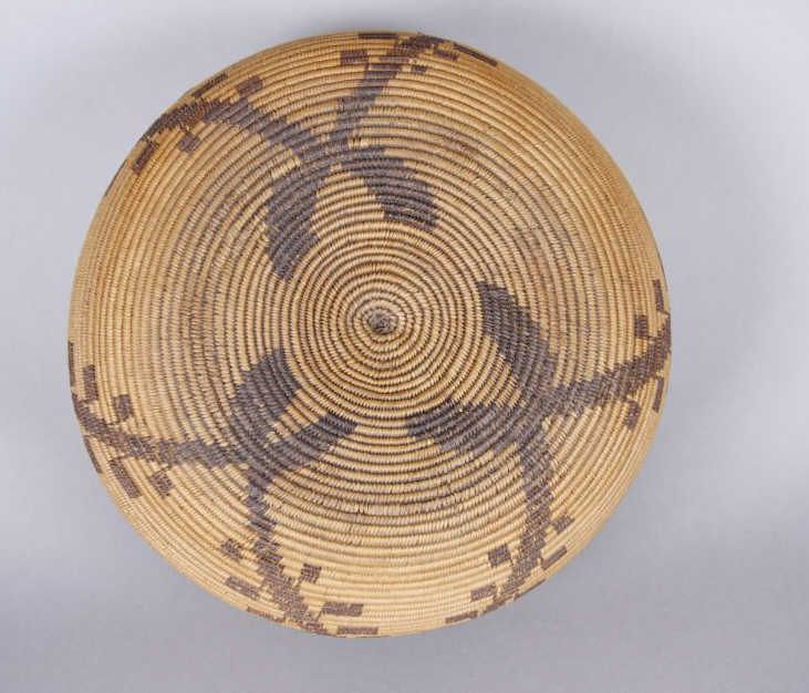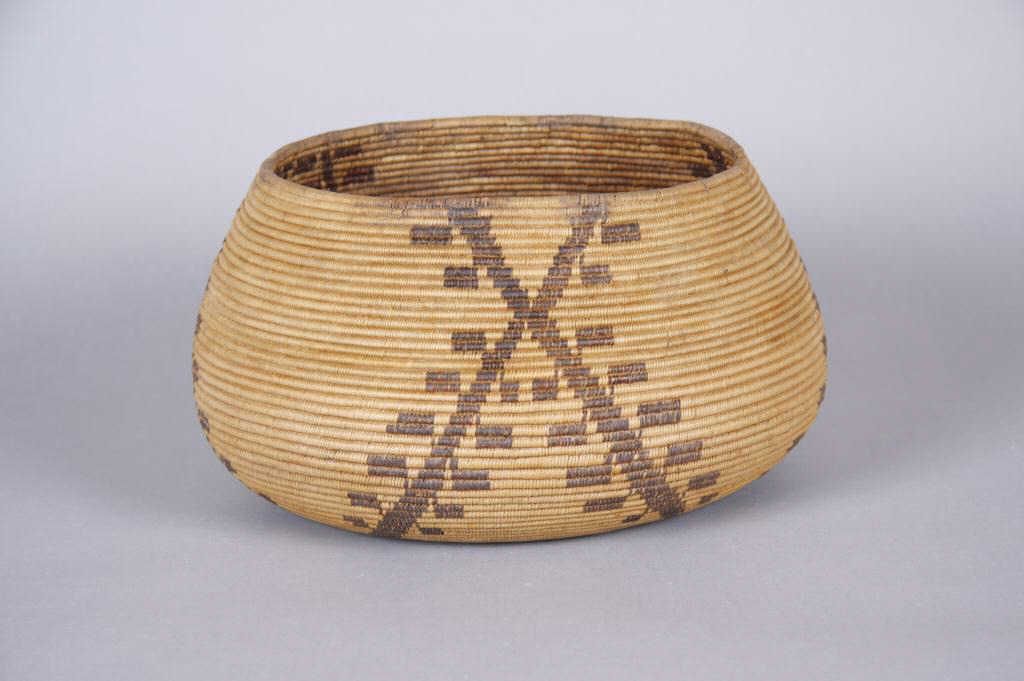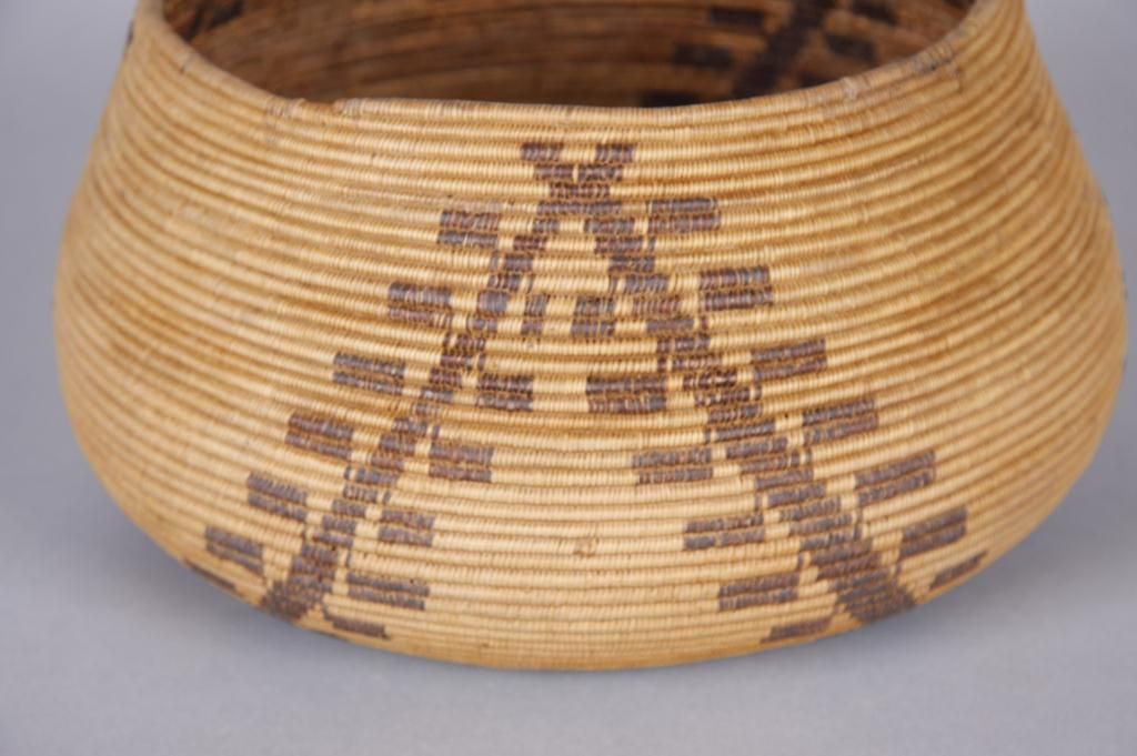 Maidu Basket from Central CaliforniaGeometric teepee design, measures 6"Hx9 1/2"dia graduated, over