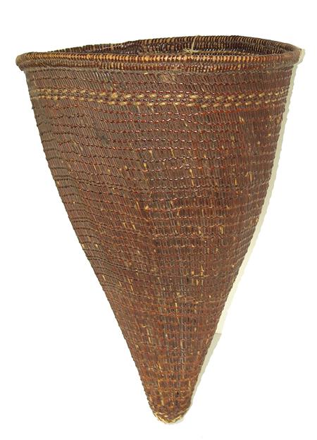 Circa Early 1900s, Very rare all redfern conical shaped burden basket with elongated shape. Very good conditon, a few small blemishes. 19" x 11" From the Johnson Collection.