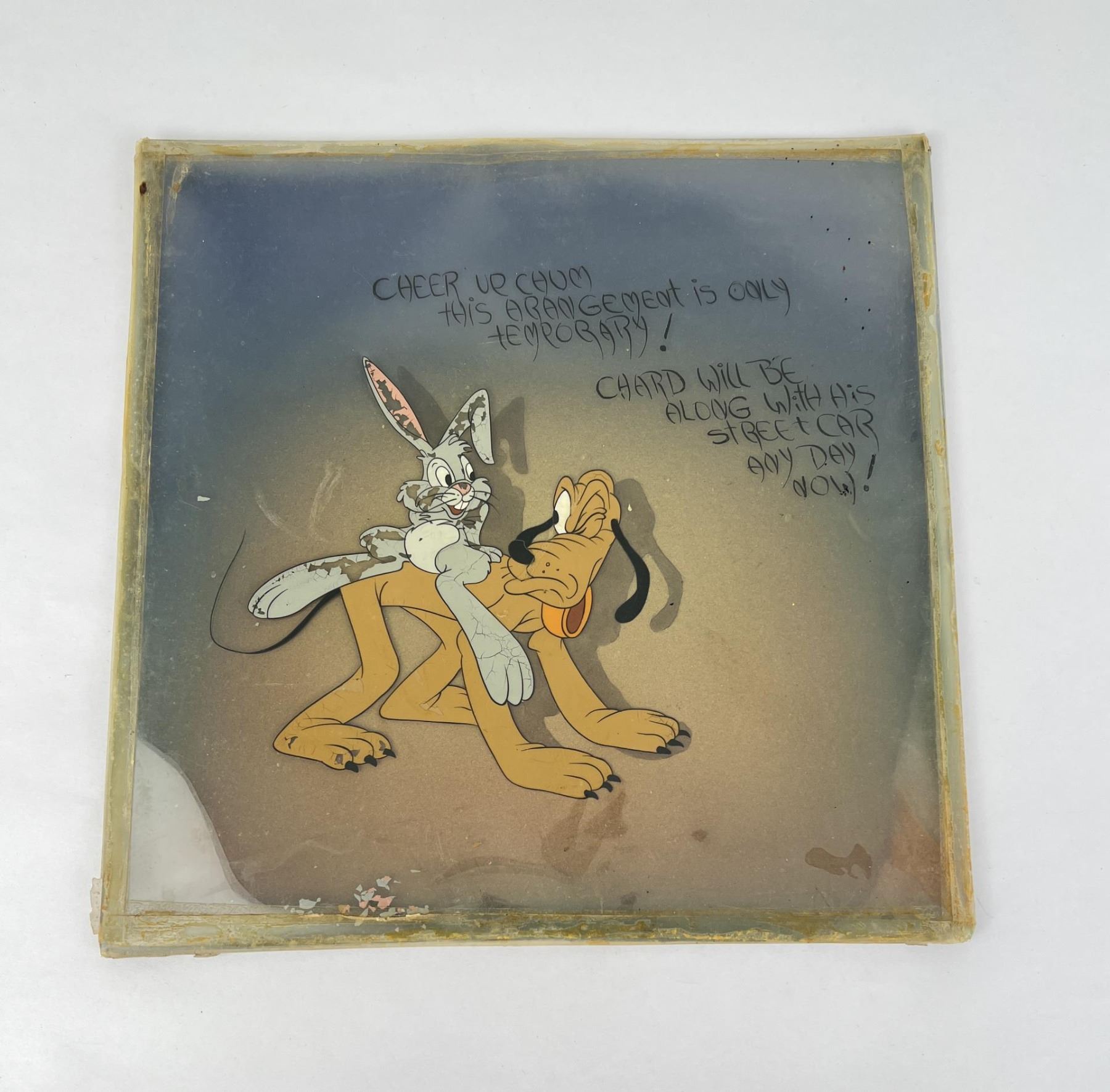 Original Cel from 1947 from the animated short Mail Dog. Has some paint crackling as shown. 9 3/8" by 10".