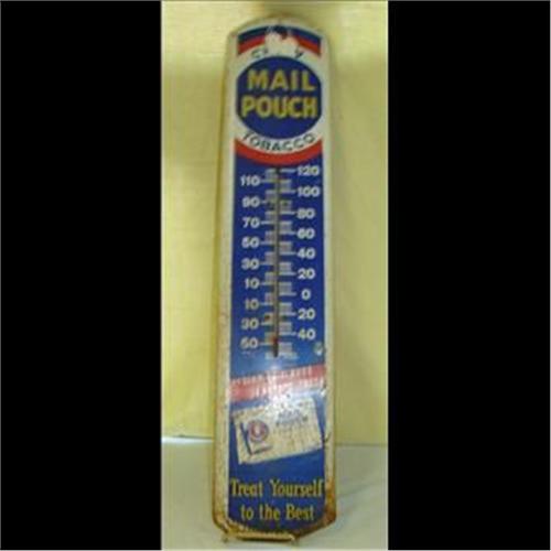 Mail Pouch Chew Tobacco Thermometer The thermometer has a lot of rust near the bottom. Measuring 38" x 8"