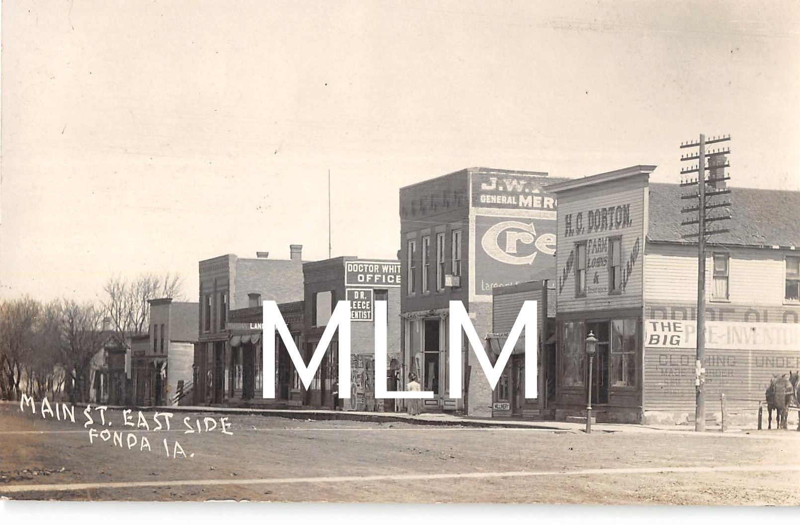 Main St. Store Front Fonda, Iowa Photo Postcard