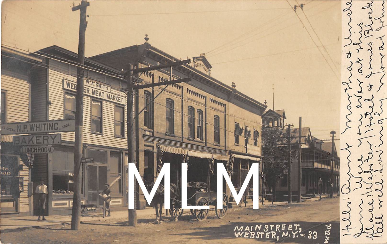 Main Street Store Front Meat Market Webster, New York Photo Postcard