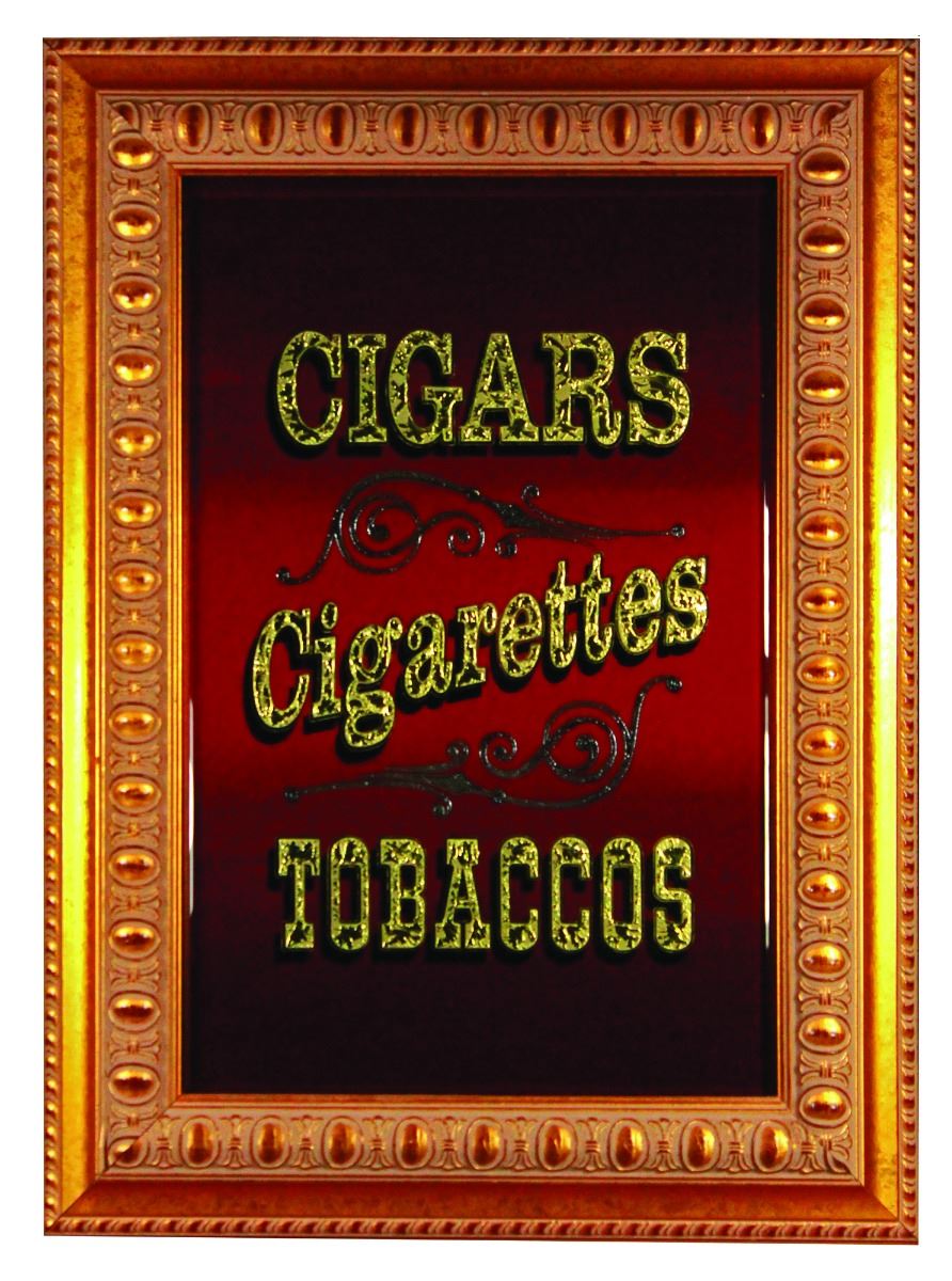 (Disneyland, 1960s) This stunning piece of art was created by the Sign & Pictorial Department to hang at the entrance of the long gone, Main Street Tobacconist Shop. Accomplished in the centuries-old technique of reverse-painted, glue chip glass. The technique involved the silkscreening of paint and frisket to glass, acid etching, sand blasting, chemical glue-chipping the surface, and gilding with silver and gold leaf. This technique was passed down from the earliest artisans hired at Disneyland in 1954 to the apprentices working under them. Some original examples can still be found within Main Street and scarce parts of New Orleans Square, such as the Club 33 address sign. This is a breath-taking reminder of the workmanship and pride held by this valued division of Walt’s theme park. Measures 17"x12.25" framed. In very fine condition.
