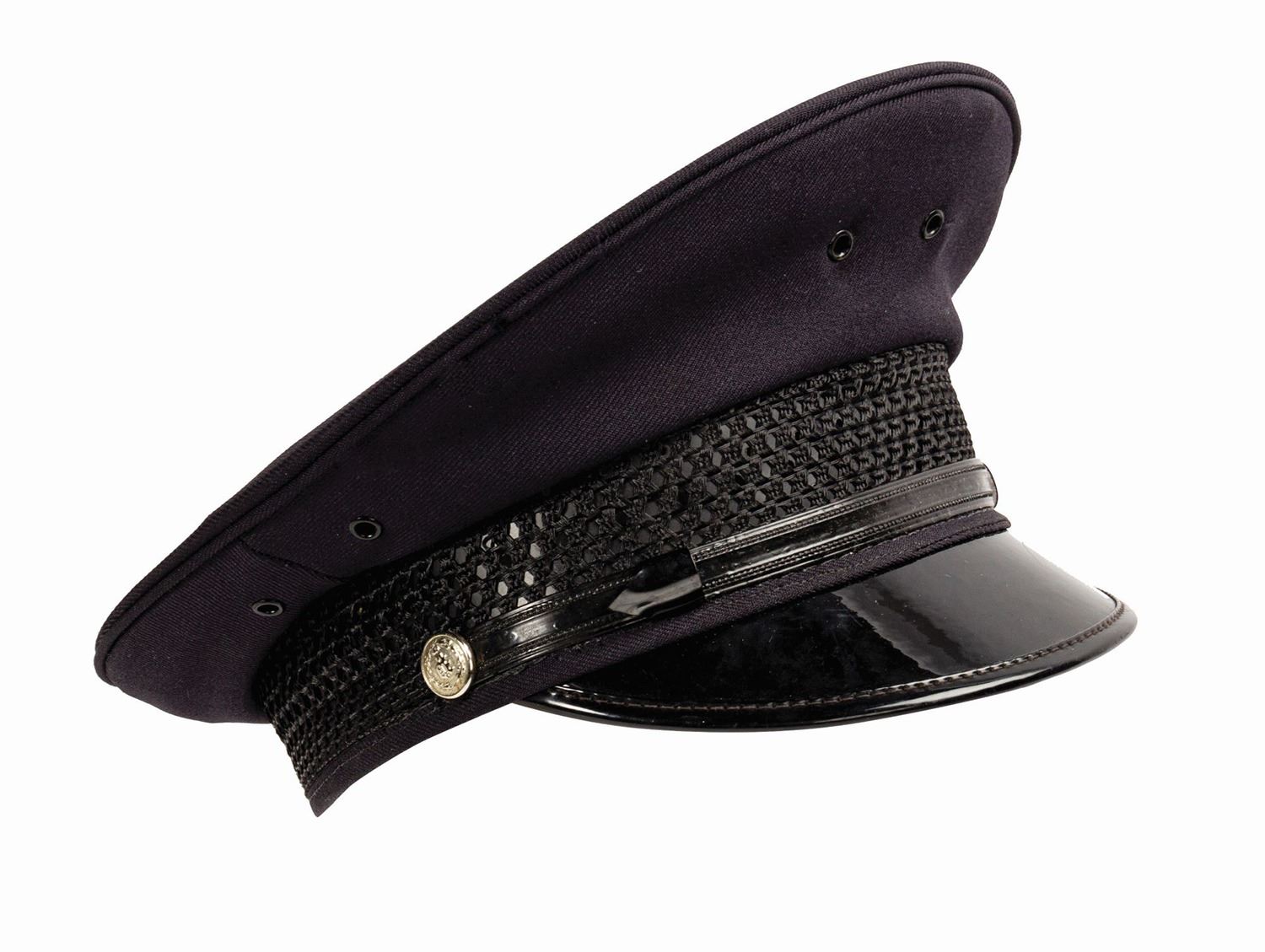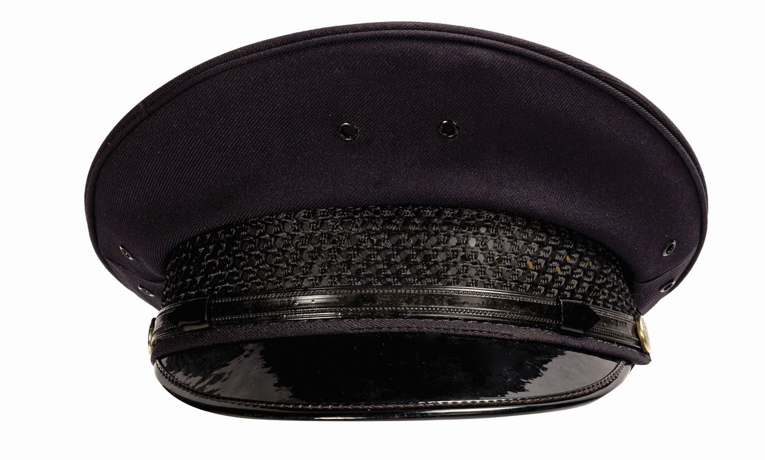 (Disneyland, c.1990s) A costume hat worn by the operators of the Main Street vehicles. These costumes are an iconic part of the Main Street experience, and this hat is easily identifiable as part of those familiar costumes. The hat still retains its inner Disneyland costume department tag. The opening measures approximately 7.25" in diameter, and the condition is very good with expected wear from use, including some spots of scratching and scuffing on the brim.