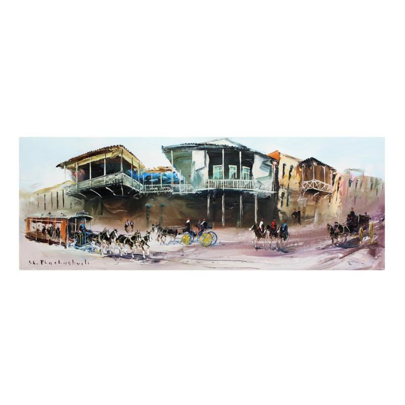 "Main Street" is an original Oil on Canvas by Shalva Phachoshvili. The piece is hand signed and comes with a Certificate of Authenticity. Measures approximately 20" x 8".