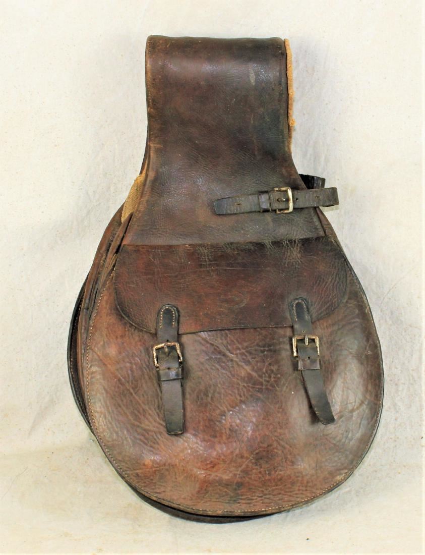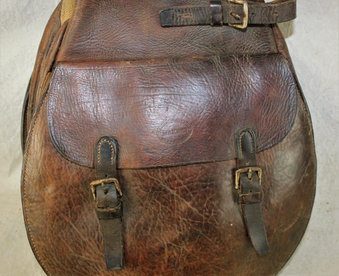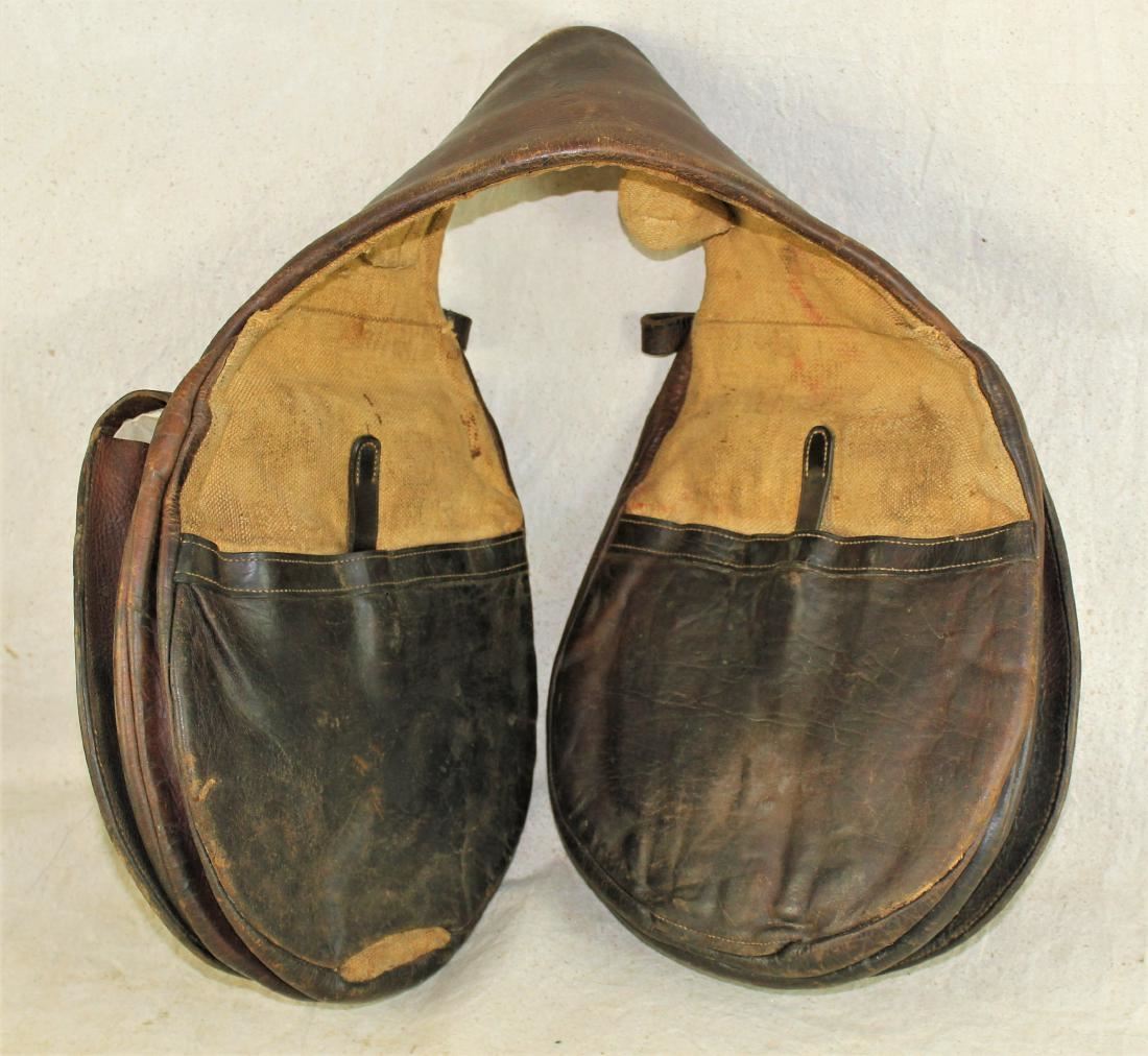 Interesting pair of saddlebags with hidden compartments on the underside, marked with questionable maker's mark, nice large bags with appealing color and condition.