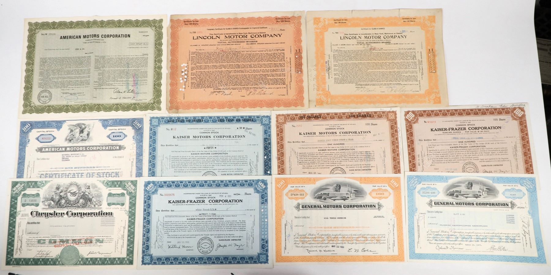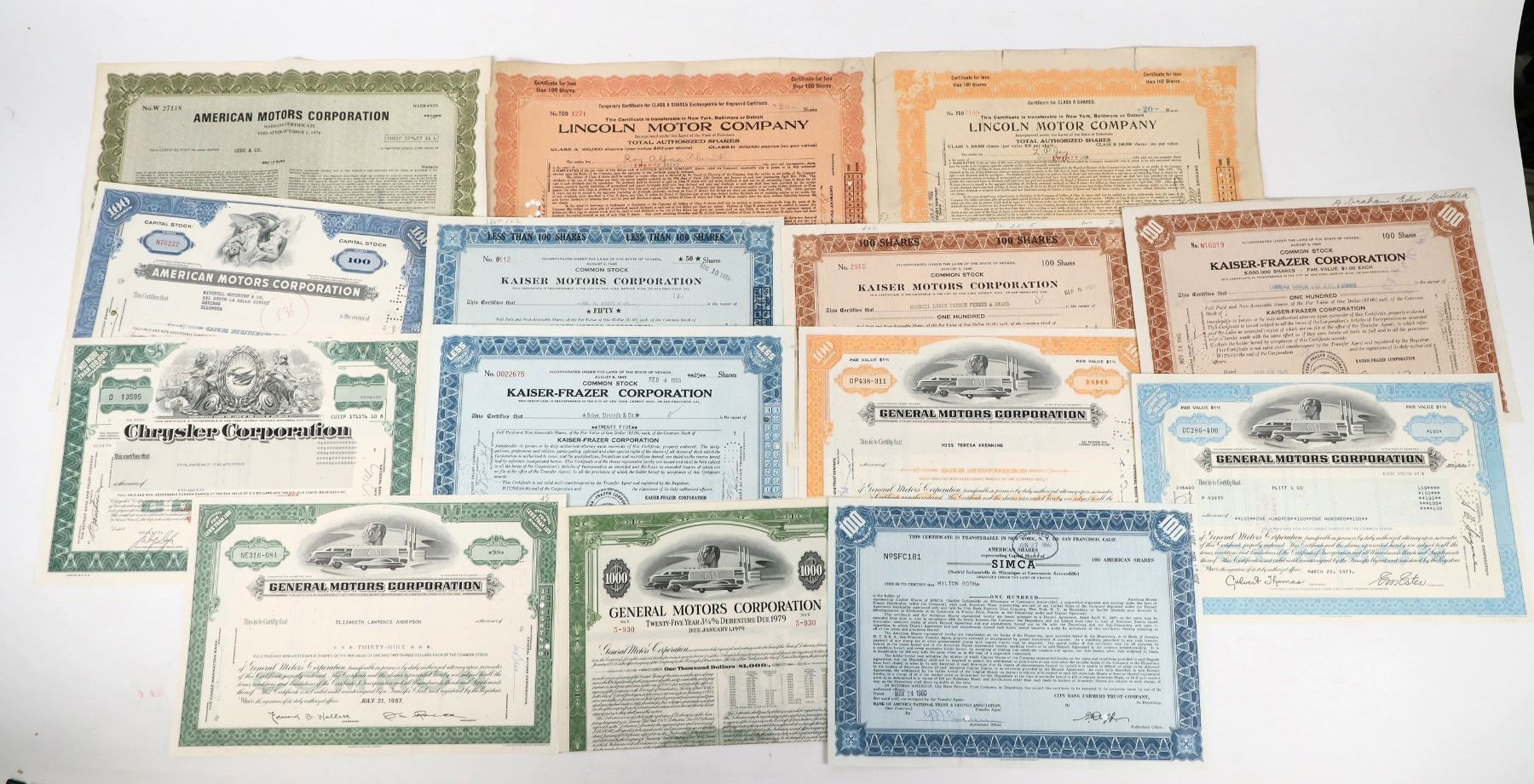 Lot of 14. Includes: four different General Motors, 1954-77; Simca (1960); American Motors Corp. (1960, 1969); Chrysler Corp. (1981); Kaiser Motors (1953); Kaiser-Frazer Corp. (1945-53); and Lincoln Motor Co. (1920-22).