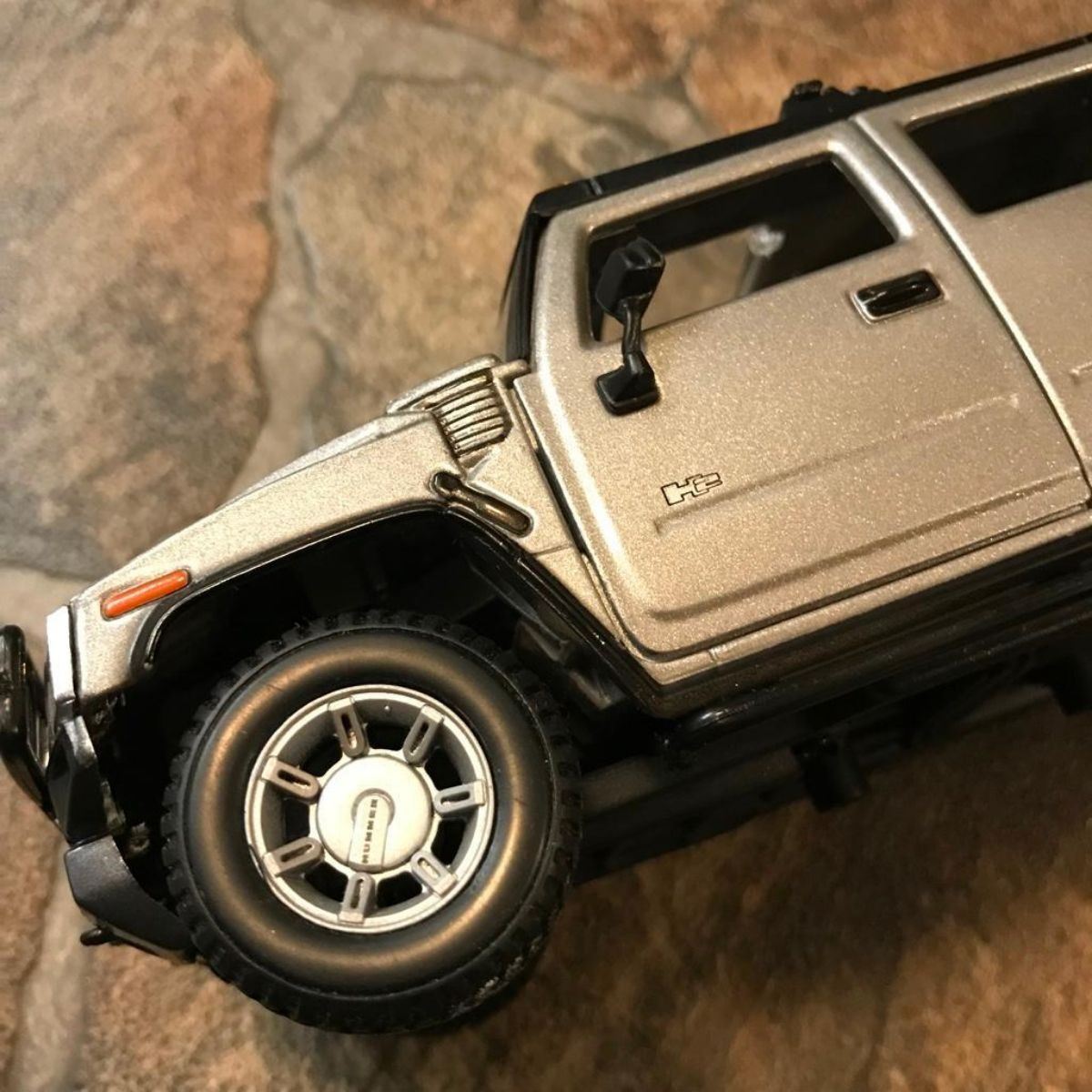 Maisto die cast model Hummer H2 SUV, Special Edition Metallic Grey. 1/ 27 Scale. 7" L X 3" W X 2 3/4" H.Â